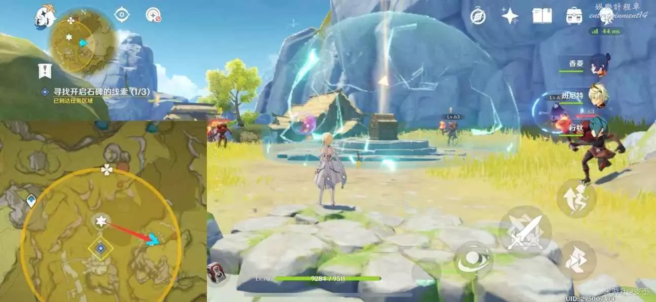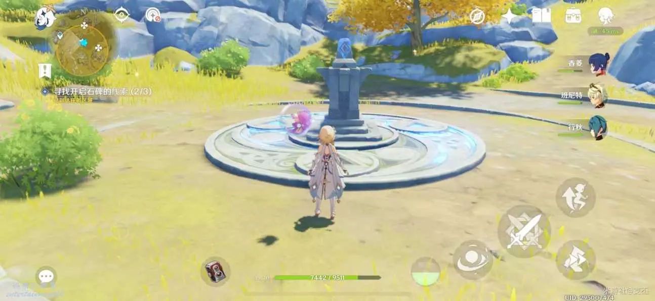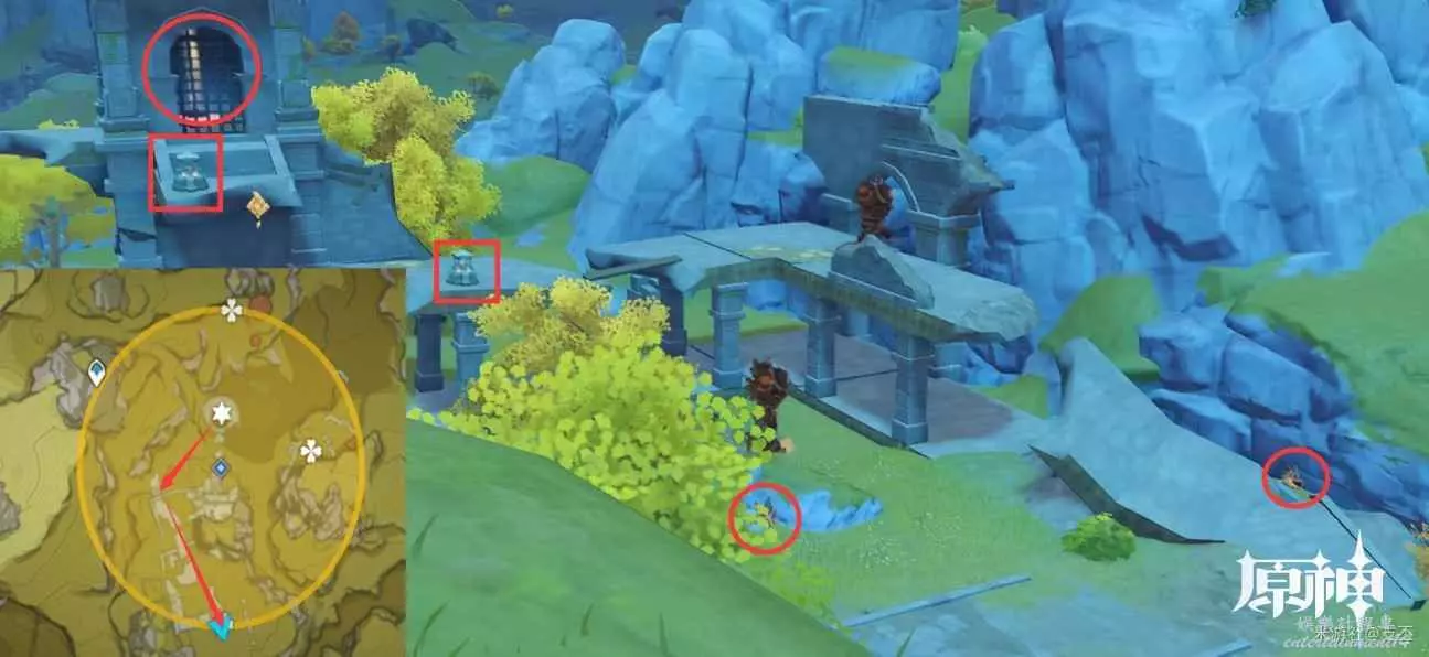 靠近光錐,出現丘丘人和屏障,擊敗它們,解鎖屏障,拾取珍貴寶箱(5原石)