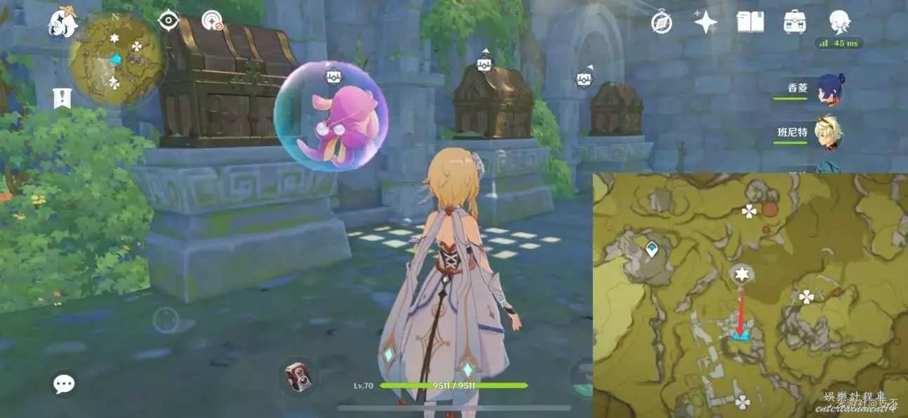 進入遺跡內,拾取三個珍貴寶箱(15原石)