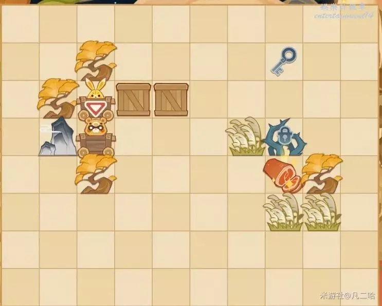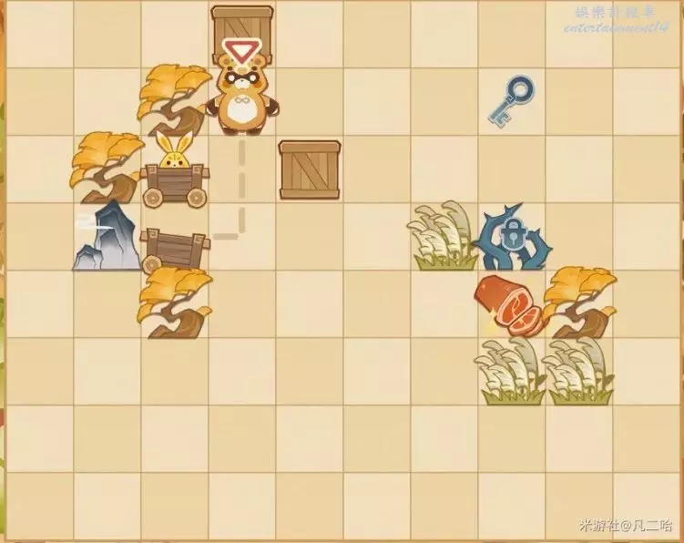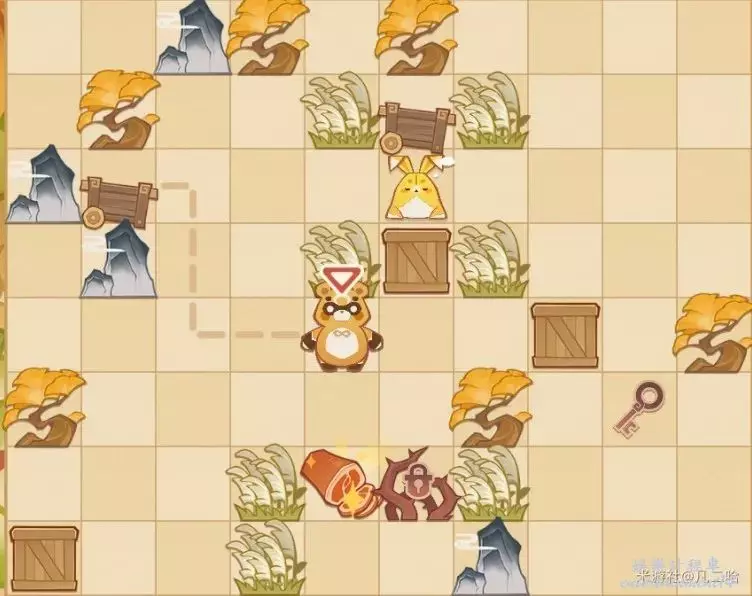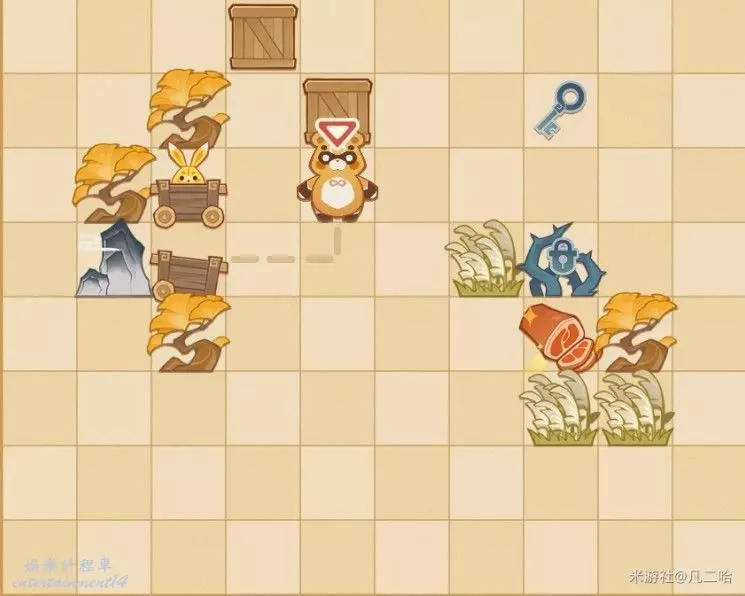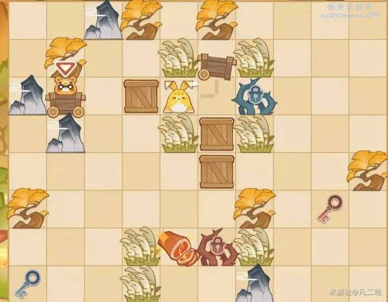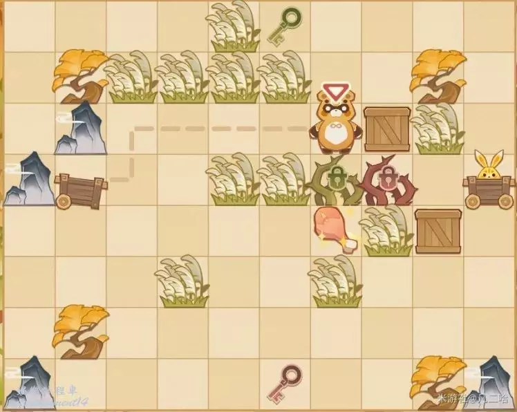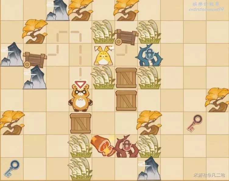 鍋巴返回,再將箱子推至藍色鑰匙