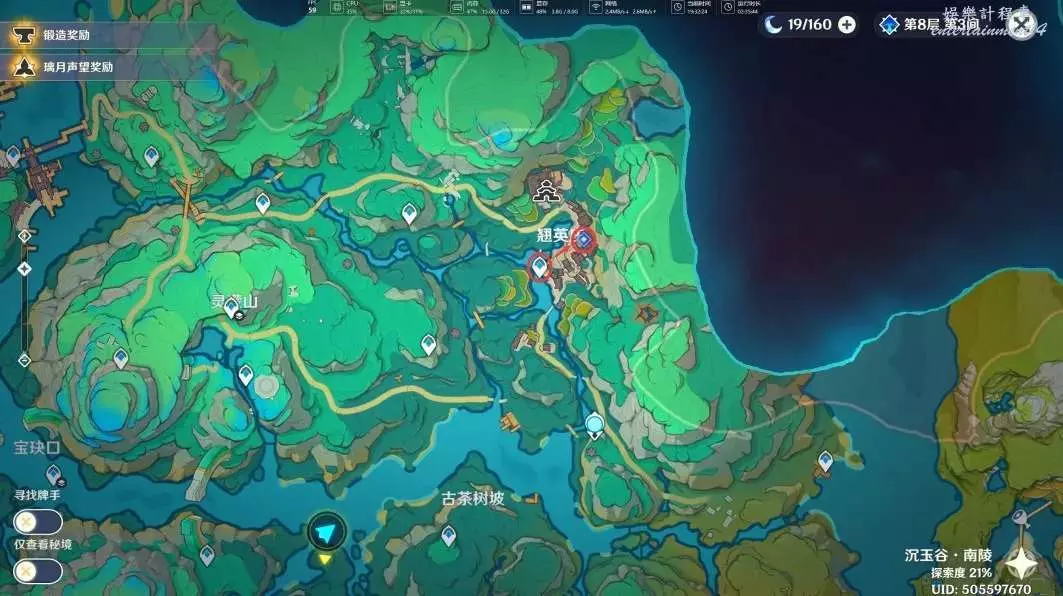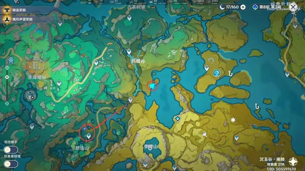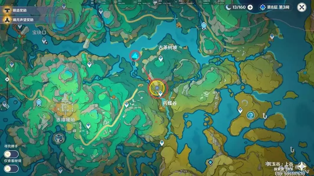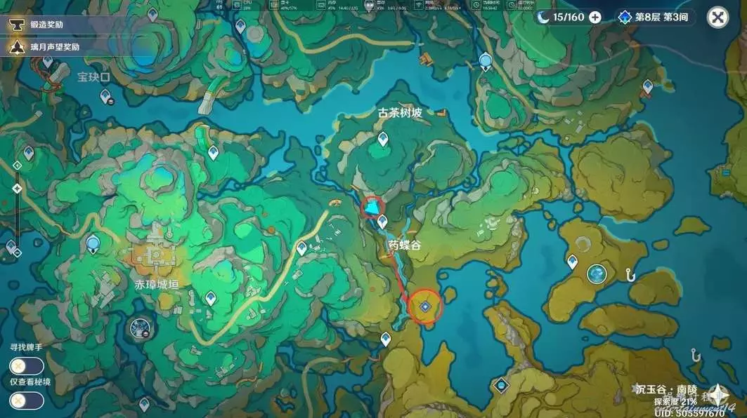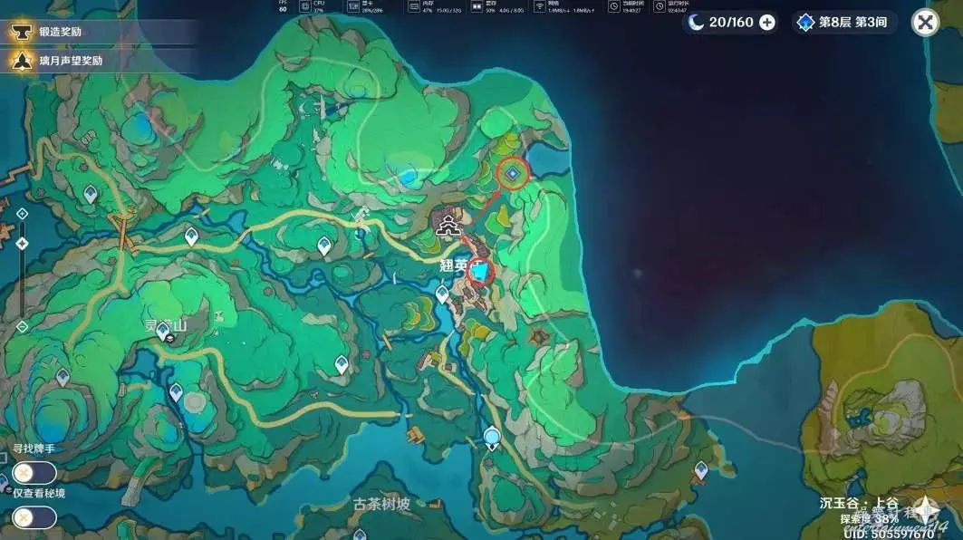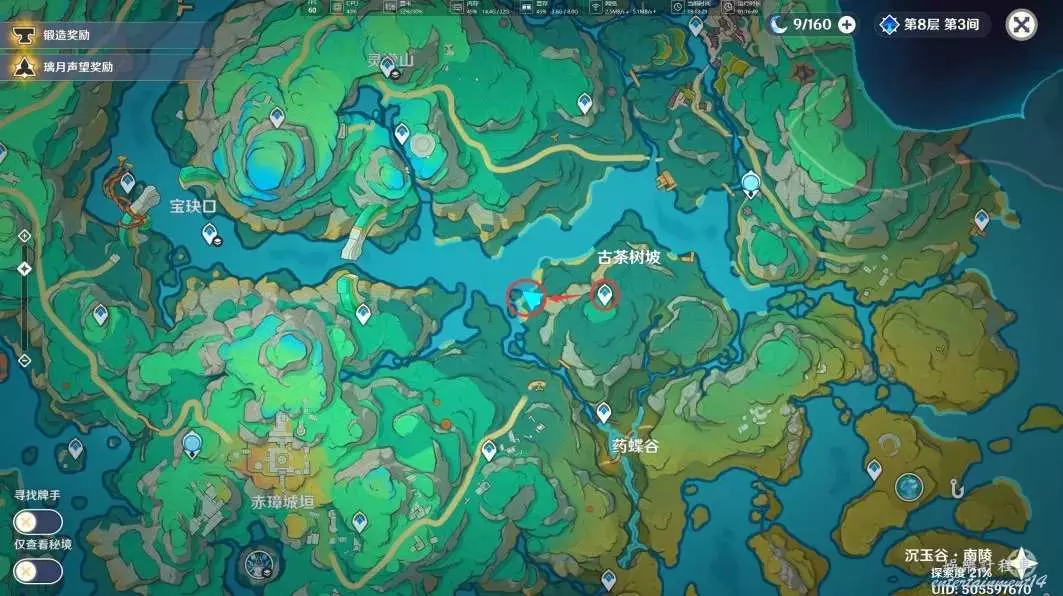 在完成「沉玉祝瓏」系列任務中的「仙山有茗,名以翹英」和任務「攸望三疊」後,我們傳送到古茶樹坡的錨點,來到下圖位置