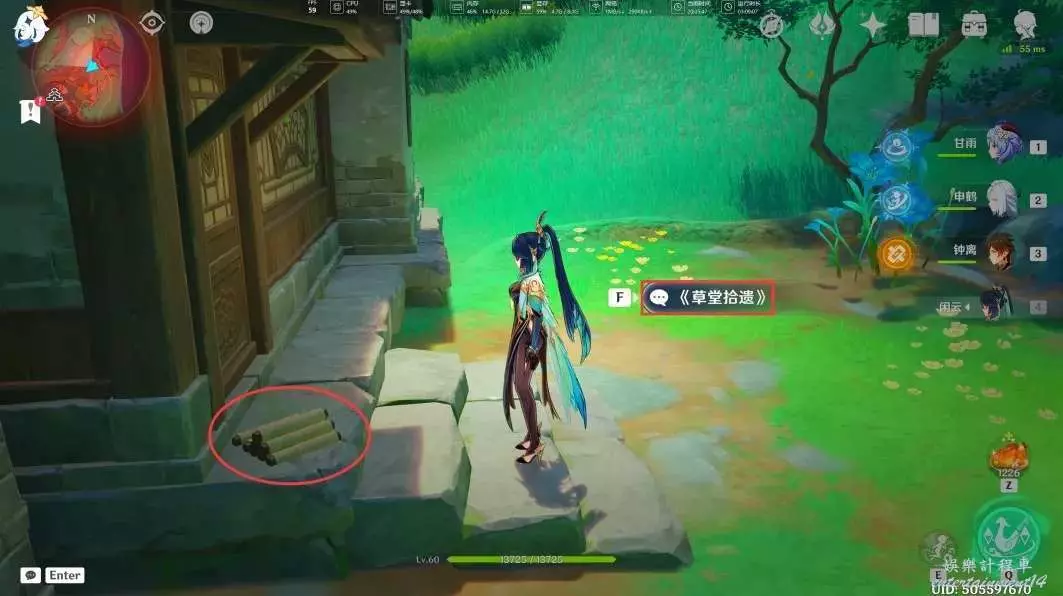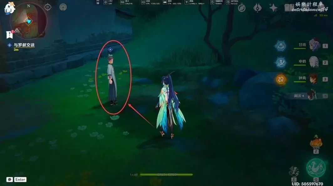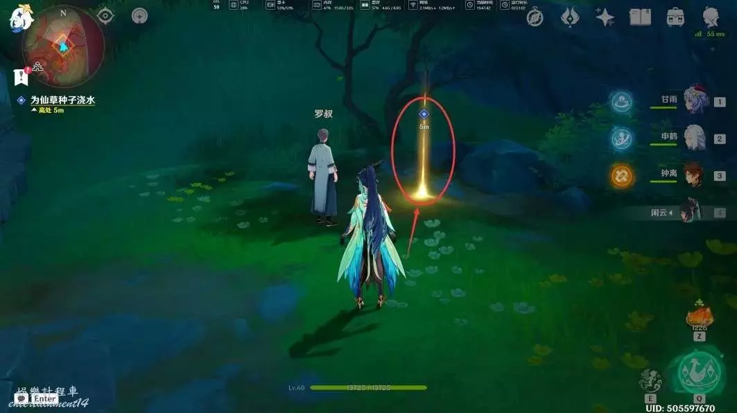 給仙草澆完水後,我們與羅叔交談(過完劇情後,任務「仙人游莊」也就結束了)
