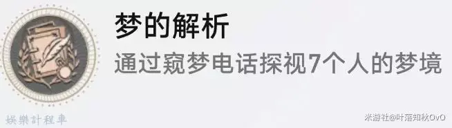 全部「窺夢電話」聽完後可獲取「與你同行的回憶」列表下成就-「夢的解析」