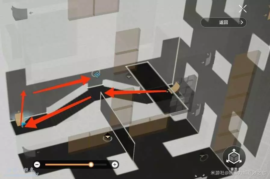 本次挑戰需要我們在高複雜度地圖中尋找寶箱,重點是利用夢泡充能裝置收集三個夢泡,通過多個夢泡實現多次翻牆移動,來尋找寶箱。