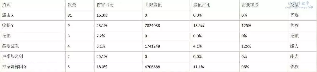 通過分析DPF發現,傷害最高的是收招YX和收招Y,其次才是技能耀眼猛攻和盧米埃之劍,最後是X連擊。