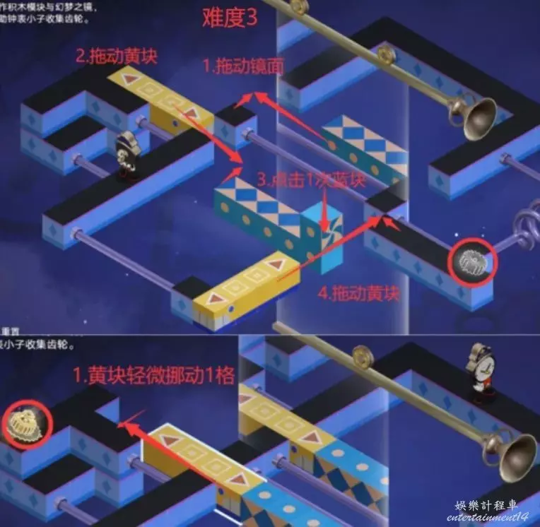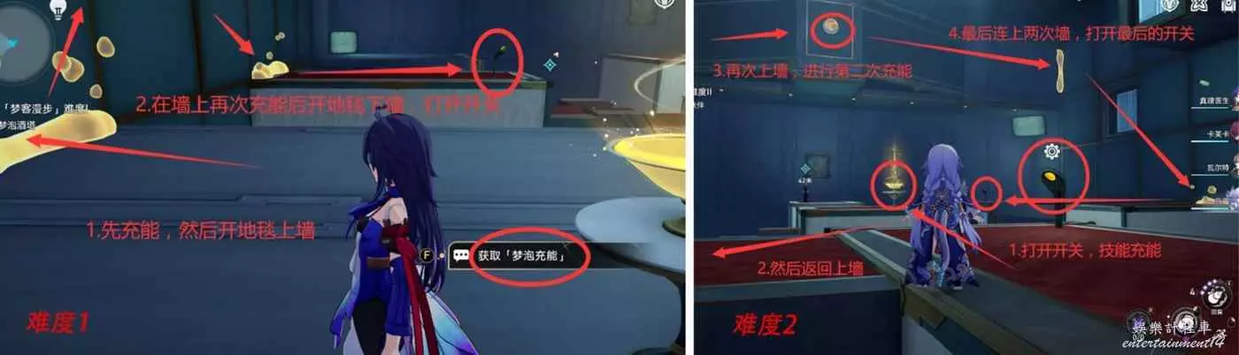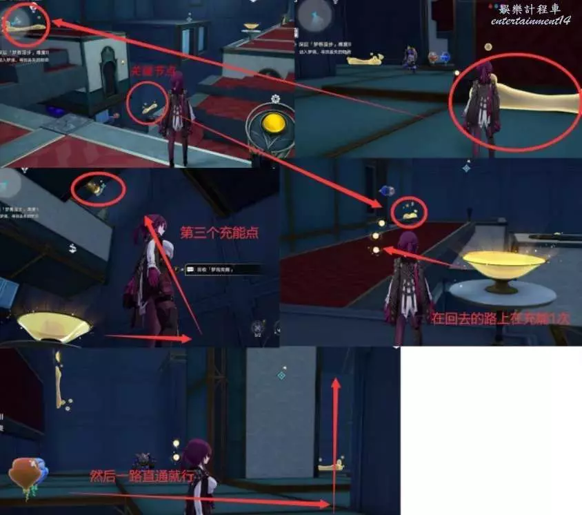 崩壞 星穹鐵道 哈努兄弟越獄記解謎合集 16 2 月 2024-02-16 廣告 作者:笑長!!又是你! 來源:米遊社論壇 淺層夢境 氣泡彈珠:難度1-2 夢境迷鐘:難度1-2 小小哈努行動:難度1-2 夢客漫步:難度1-2 深層夢境 氣泡彈珠:難度1-5 夢境迷鐘 難度1-5 小小哈努行動 難度1-2 夢客漫步 難度1-2 基本上都是單行道,有充能選充能,唯一的分叉點就在機關這裡。 把最後的充能點解鎖了,就有3點充能。然後返回走左邊的路通關。