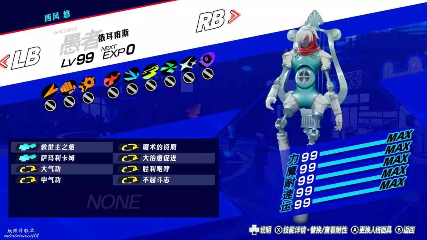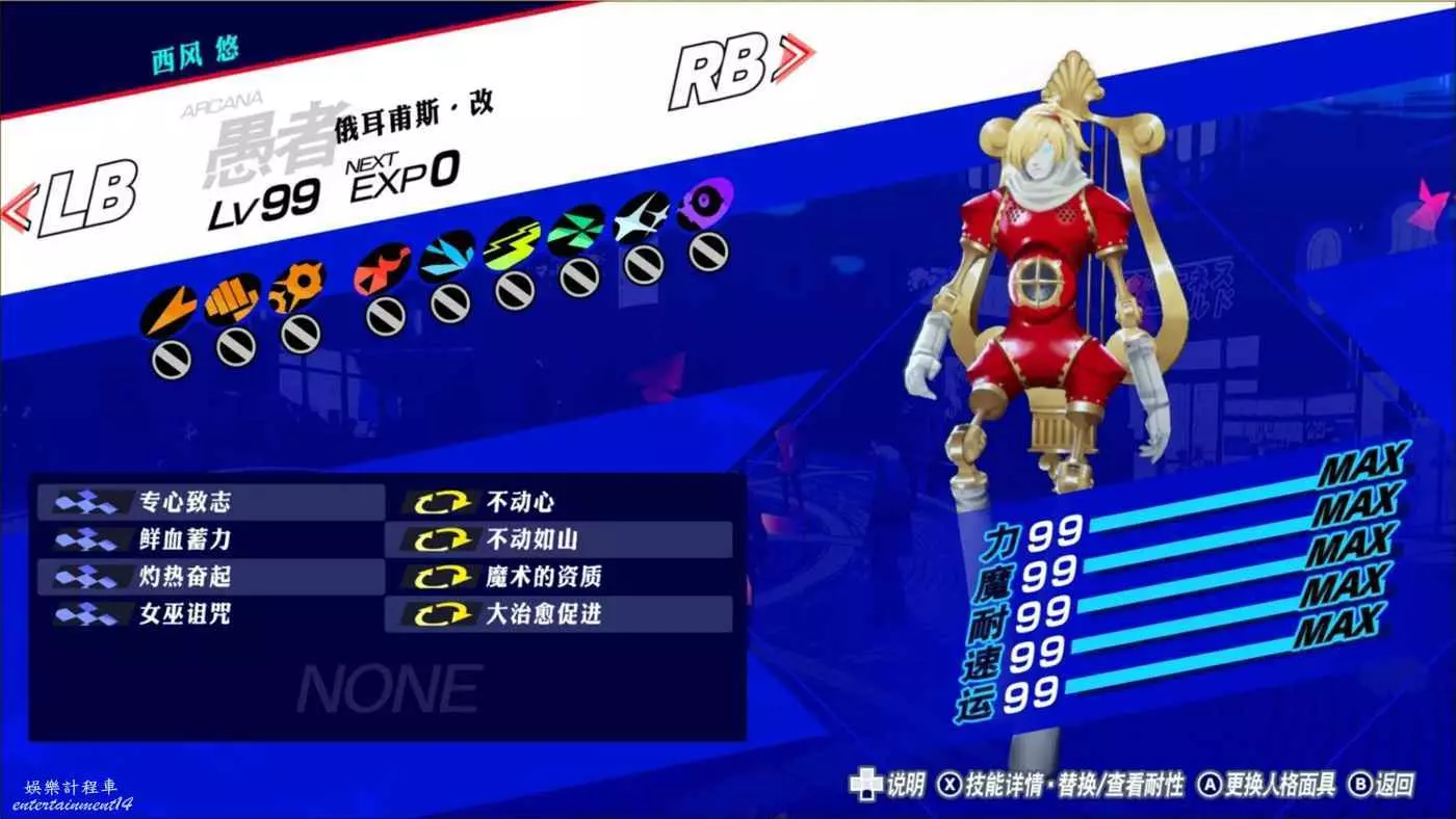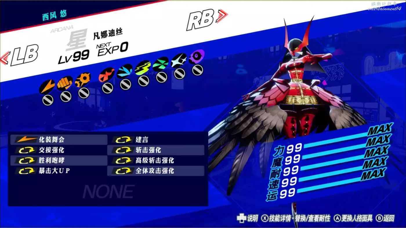 強調一下,我玩這個系列凹面具/仲魔,一般來說只要技能看起來不雜亂無章,玩著舒服我就可以接受了。凹什麼面具選什麼技能其實是應該看你的需求,結合實際需要出發的,但是p3r目前剛出,本身沒有挑戰房間可打;伊莉莎白本身壓迫感驟減,並且硬要說只要沒有吸收反射就ok了。所以沒什麼實際可以出發,按自己喜好來就好。因此,屬性魔法p追求極限可以凹上魔導精髓,但我懶得去凹,因為這個技能只能變異,並且不可繼承。這意味著你只能sl或者反複合,讓它剛好變在目標p上。理論上,被動增傷是五倍上限,終極*高級*強化*單全體強化*魔導才能=1.75*1.5*1.25*1.15*1.25=4.71。魔導精髓換掉一個技能,可以幫你把這個常態4.7補到5倍,但是能打交接的少數場合,有沒有一樣都是5倍。要不要去凹自己權衡。因為我不排斥真球,所以不用補耐性的話,技能格很充裕。