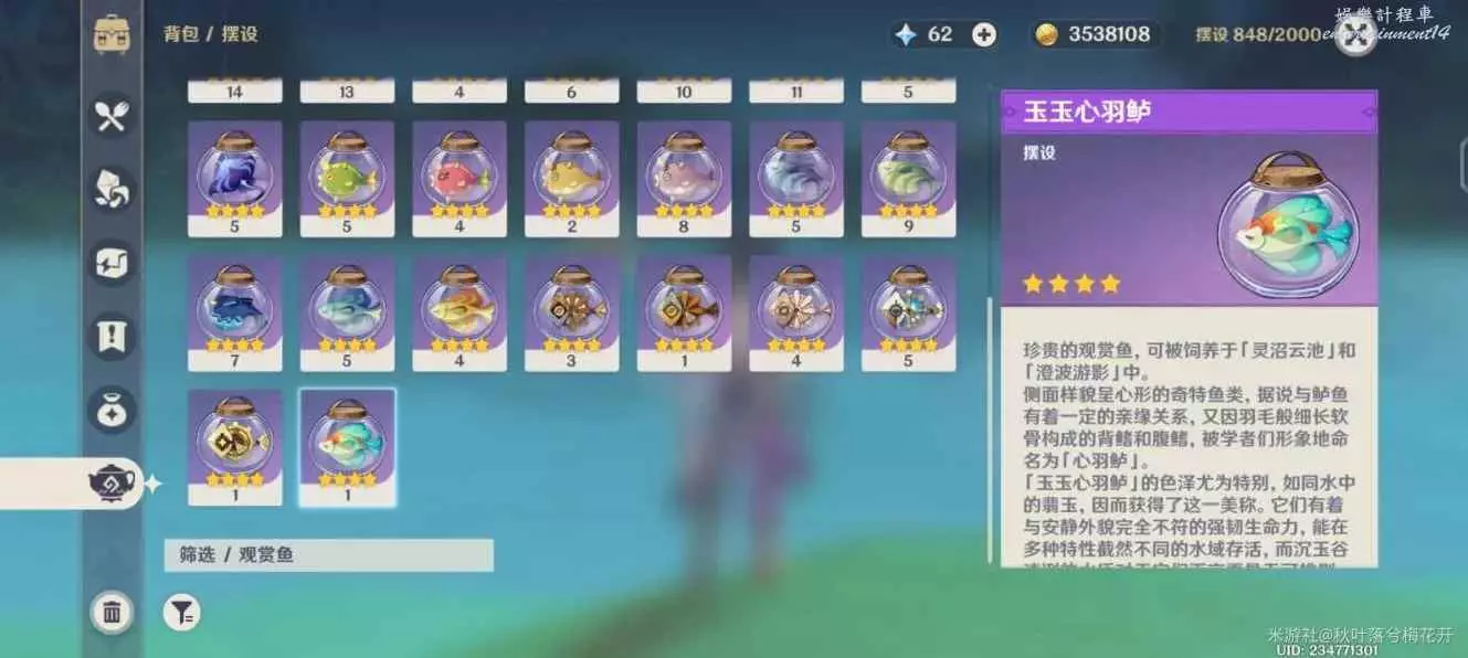 玉玉心羽鱸(觀賞魚和那個女人家門口的粉東西一樣難刷)