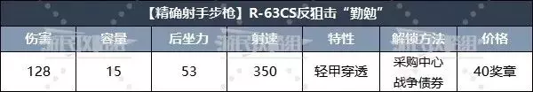 這把R-63CS反狙擊“勤勉”比R-63勤勉的傷害更高,但後坐力更大,其他存在的問題與R-63勤勉一樣。