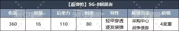 SG-8制裁者的傷害很高,不過它的手感比較類似於經典的霰彈槍,最好還是用於近距離擊殺敵人,尤其是在體驗過本作另外幾個霰彈槍(例如破裂者)之後,就會感覺這把槍的手感相對較差,而且裝彈速度也很慢。
