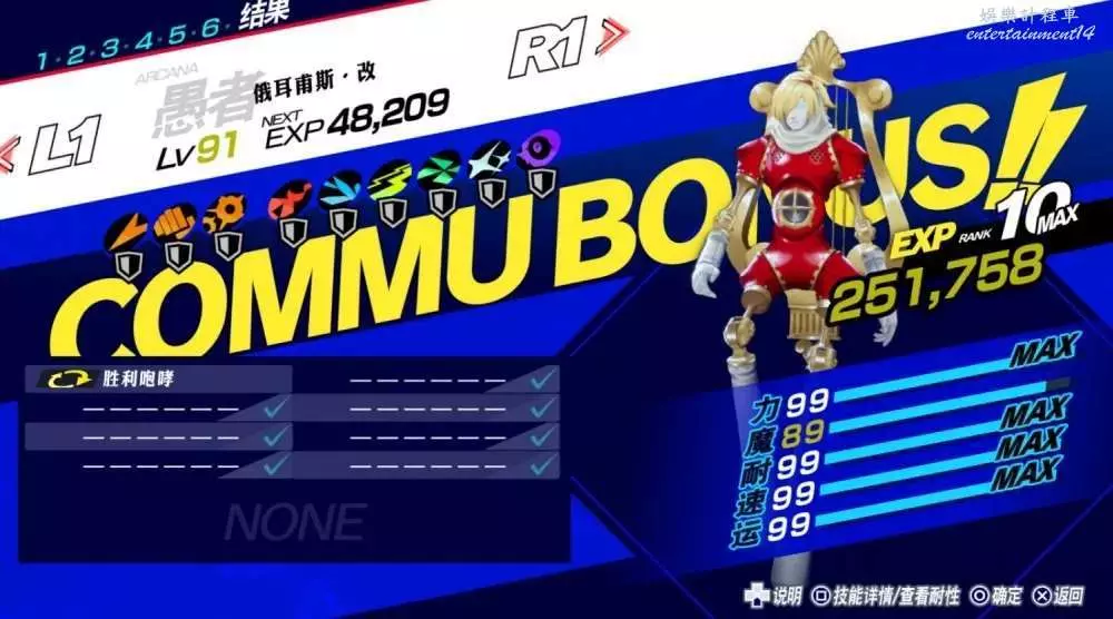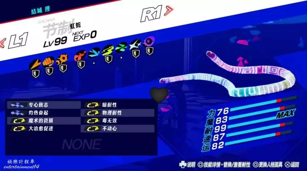 雖然繼承的卡片點數不算多,但由於虹蛇本身就是以耐久見長的人格面具,所以升到99級時大幾率耐會到達99,由於虹蛇在本戰主要是輔助作用,有99的耐就足夠用了,其它的數值倒也沒那麼重要。詳細的虹蛇打法可以看我的影片BV1Ex4y117Sj。最後提一嘴,壯烈弱化經文不用刻意去刷,10個就完全夠用了,實際上我只用了5個。