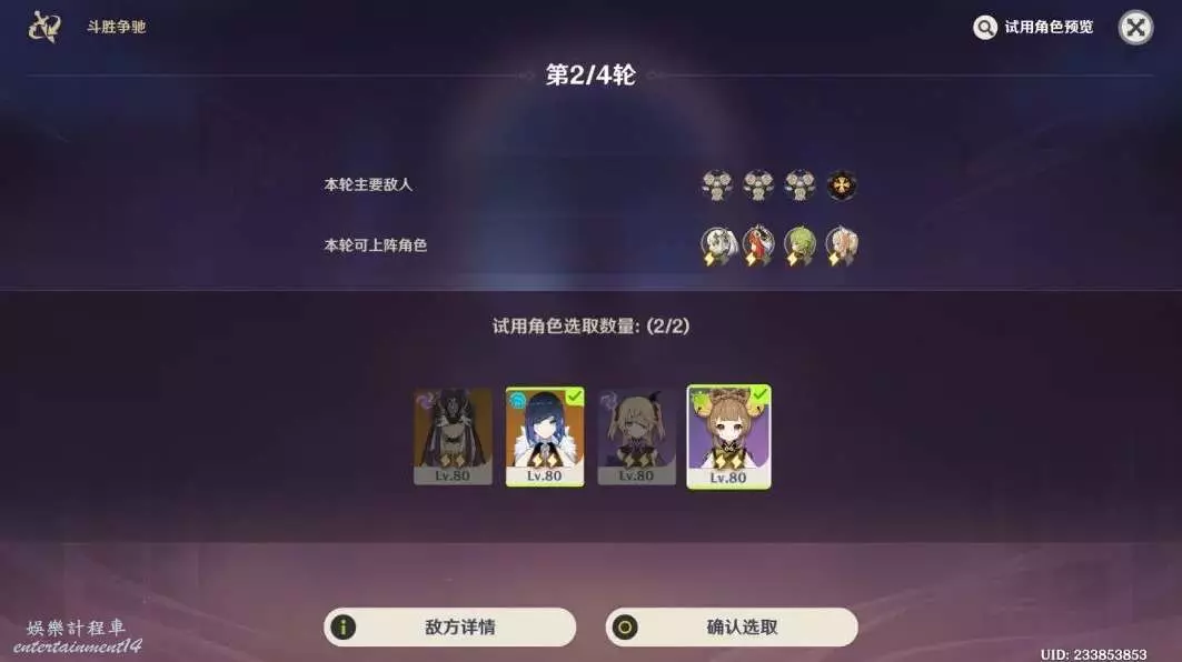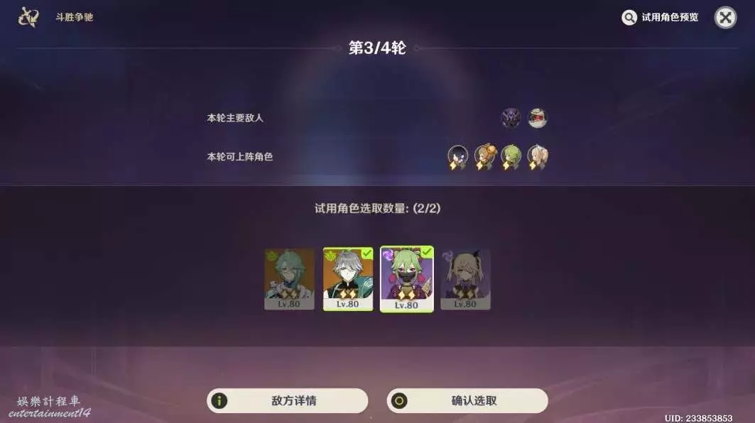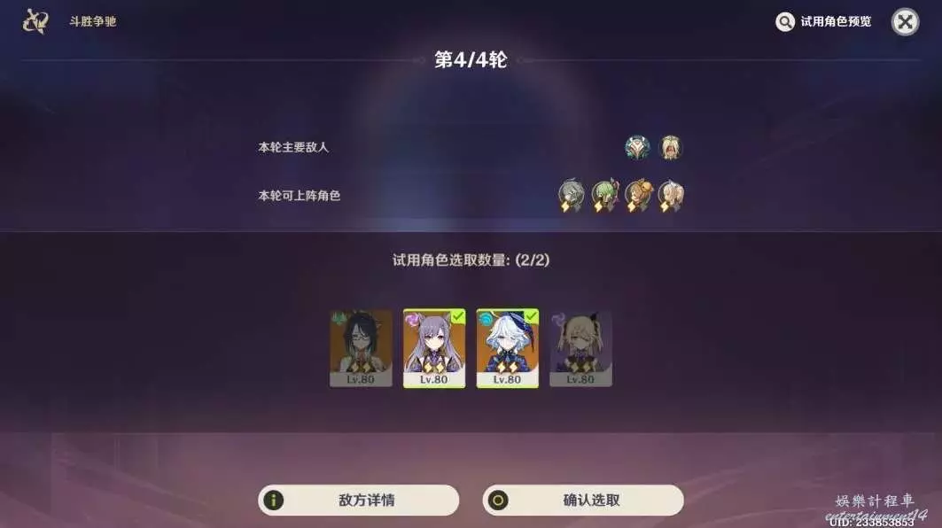 1.每輪選取四名角色,在指定時間內完成挑戰