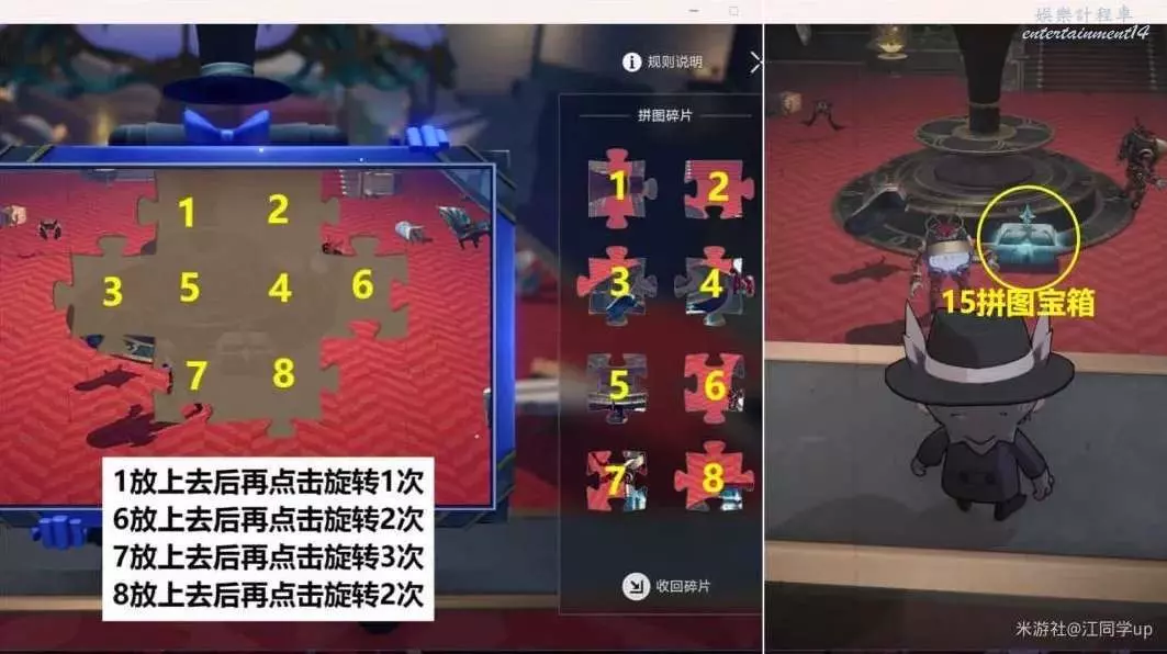 (7)下面是【15拼圖寶箱】解密,完成後下面出現【15拼圖寶箱】,然後傳送下去拾取即可