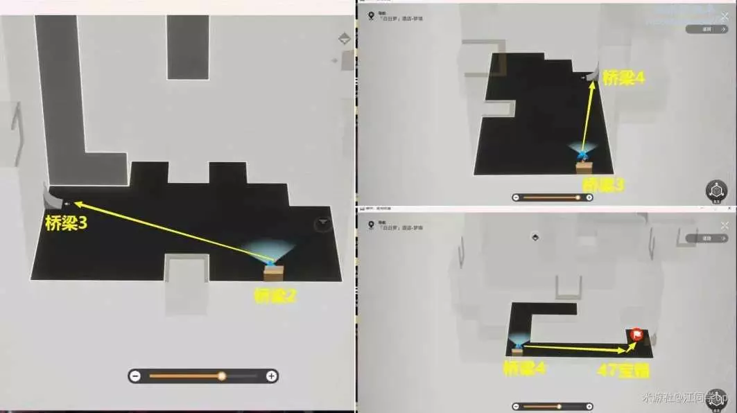 (4)從【橋樑2】上來後,繼續從【橋樑3】上去,接著繼續從【橋樑4】上去後,右邊過去就是【47寶箱】