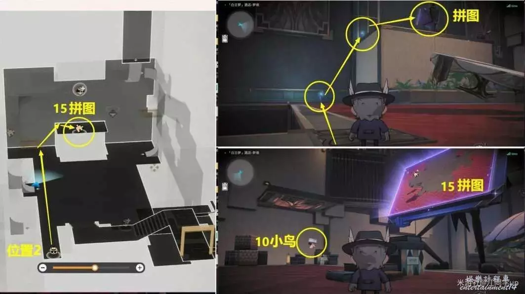 (6)回到初始位置【位置2】後,去完成【15拼圖寶箱】,拼圖上面還有【10小鳥】