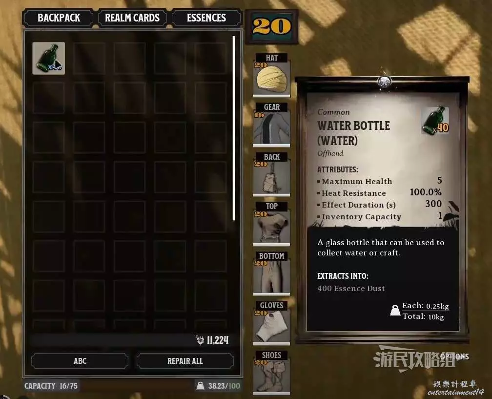 ②提煉40個水瓶,獲得400精塵。