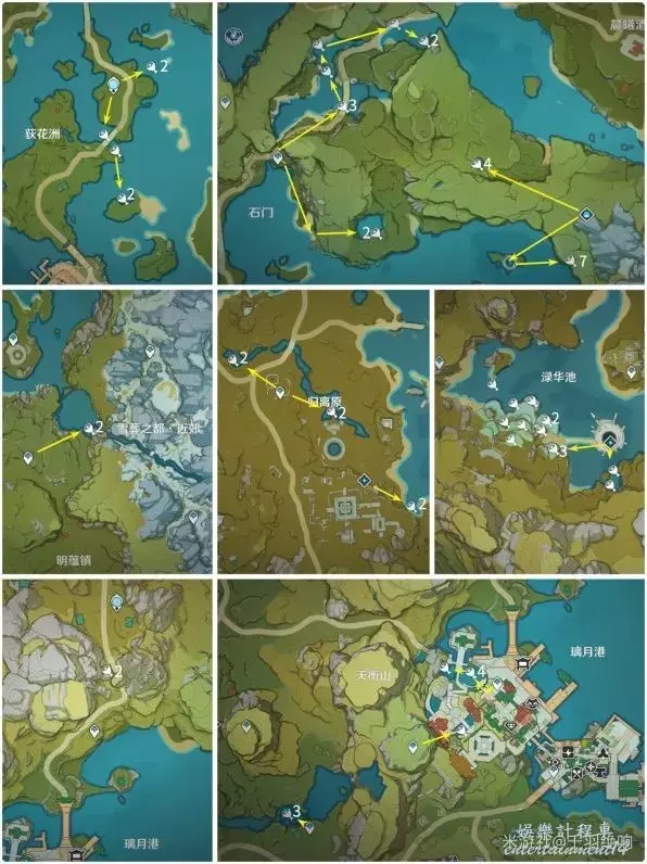 原神 (Genshin Impact) 蓮蓬採集線路推薦 22 2 月 2024-02-22 廣告 作者:千羽絕響 來源:米遊社論壇 大世界可採集85(非全部,捨棄了一個只有一個的點位) 璃月港 萬民堂 可購買x10 (3天一次) 璃月港 不卜盧 可購買x10 (3天一次) 一次共可獲得105個蓮蓬