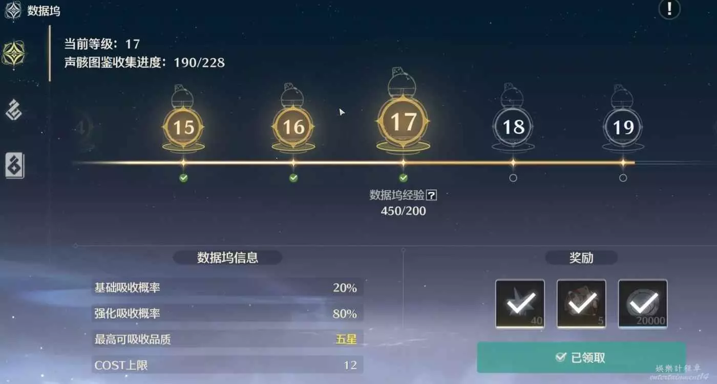 資料塢的等級,可以收集聲骸圖鑒來提升。