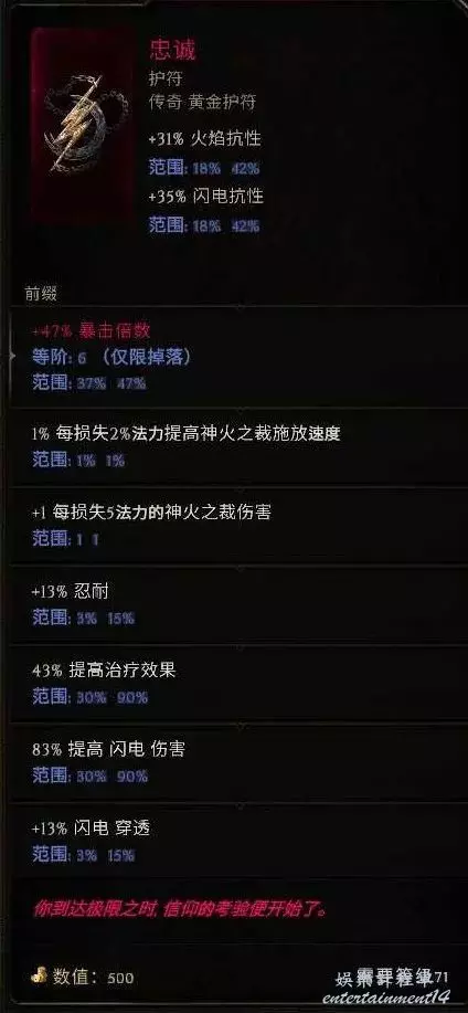 2.依託核心裝備,奉獻(devotion)項鍊,大量堆砌協調 魔力詞綴 獲取大量魔力 上限,通過耗藍杖或者希望印記壓減當前魔量,獲取大量懲戒自我調整法術點傷 海量提升輸出。