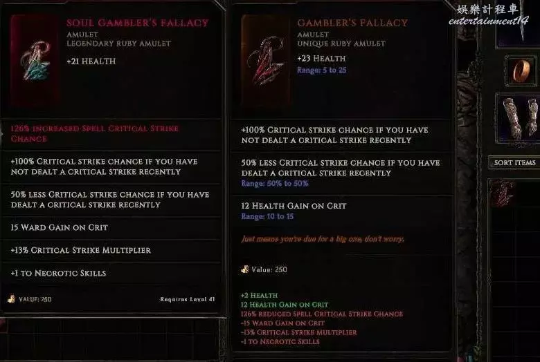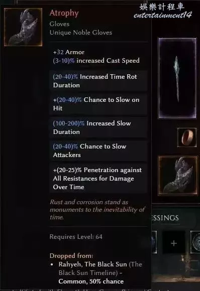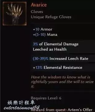前期生存吸血端:元素吸血手套,和賭徒項鍊是分開的兩個任務交付時獲取的不同獎勵。後期刷出高浮動法術吸血祝福時換掉。