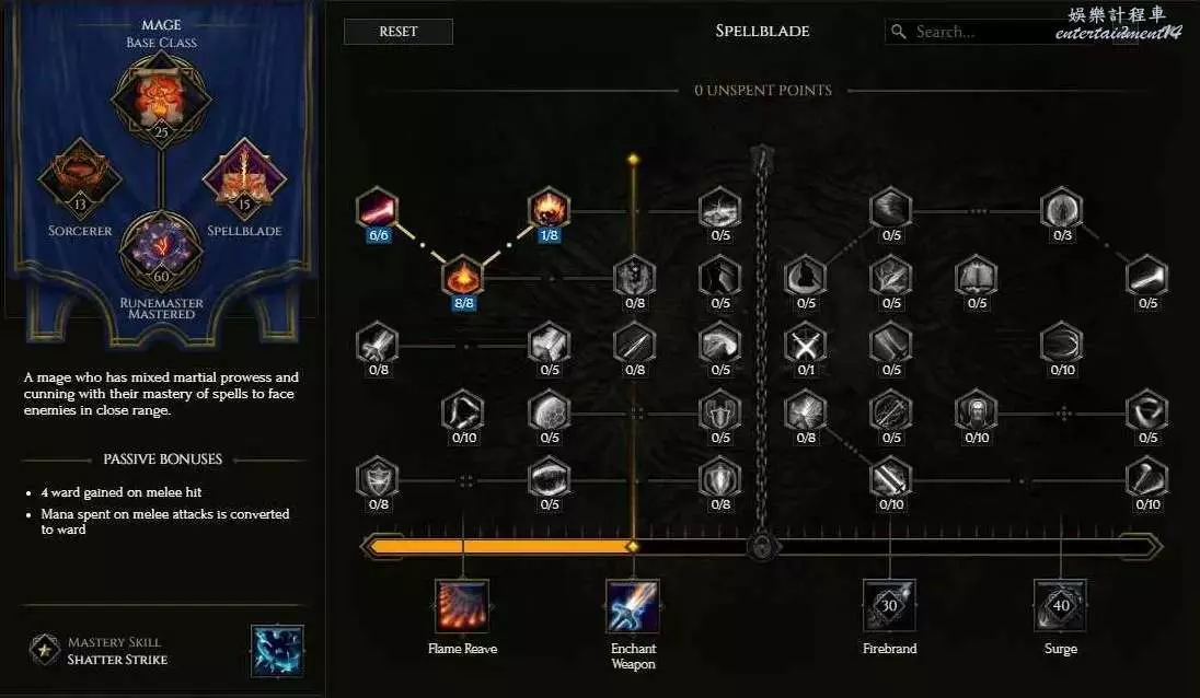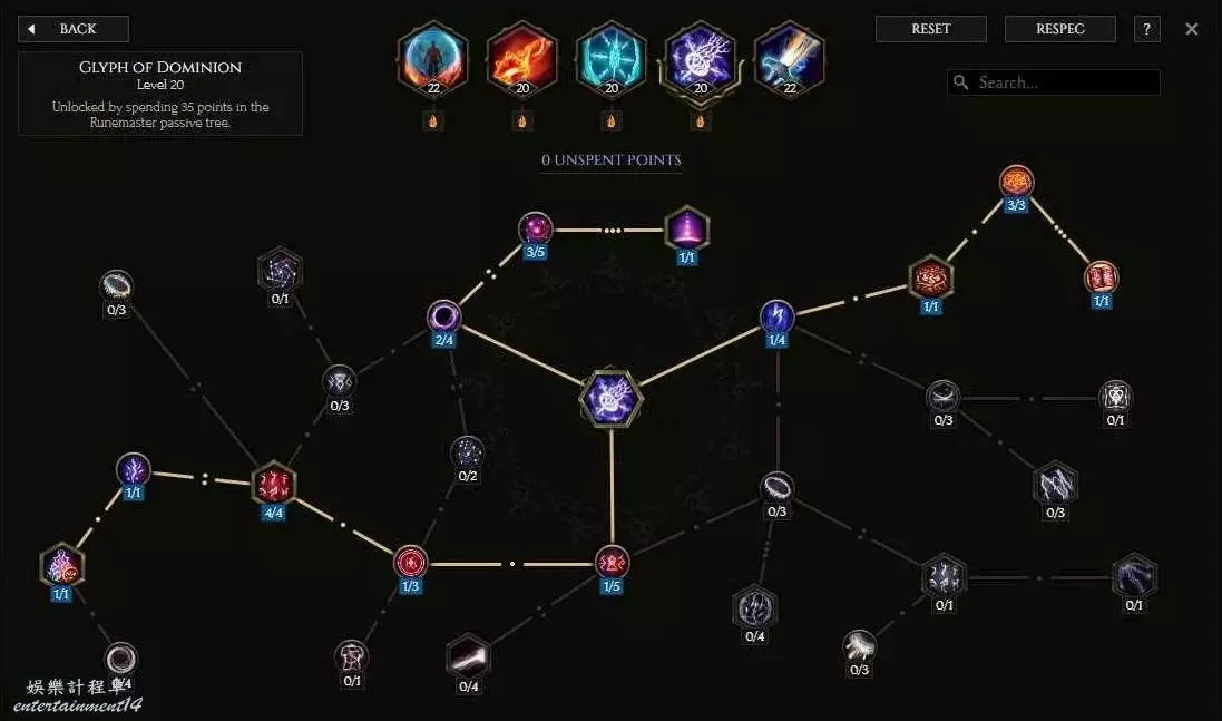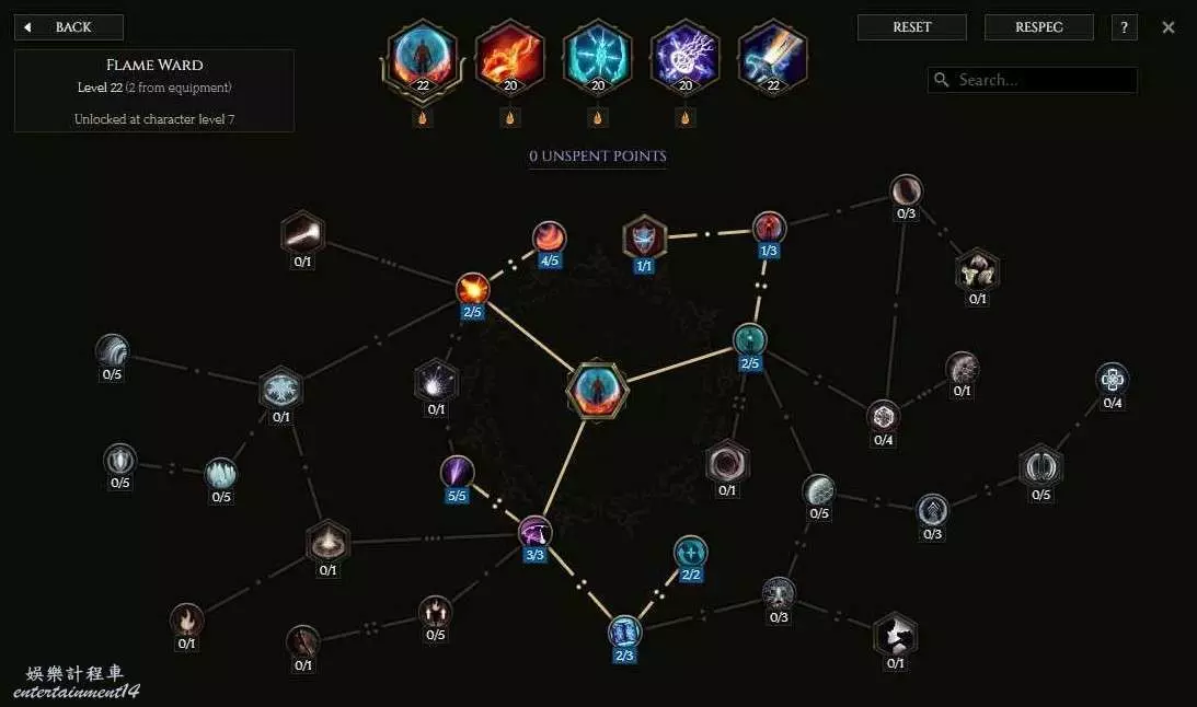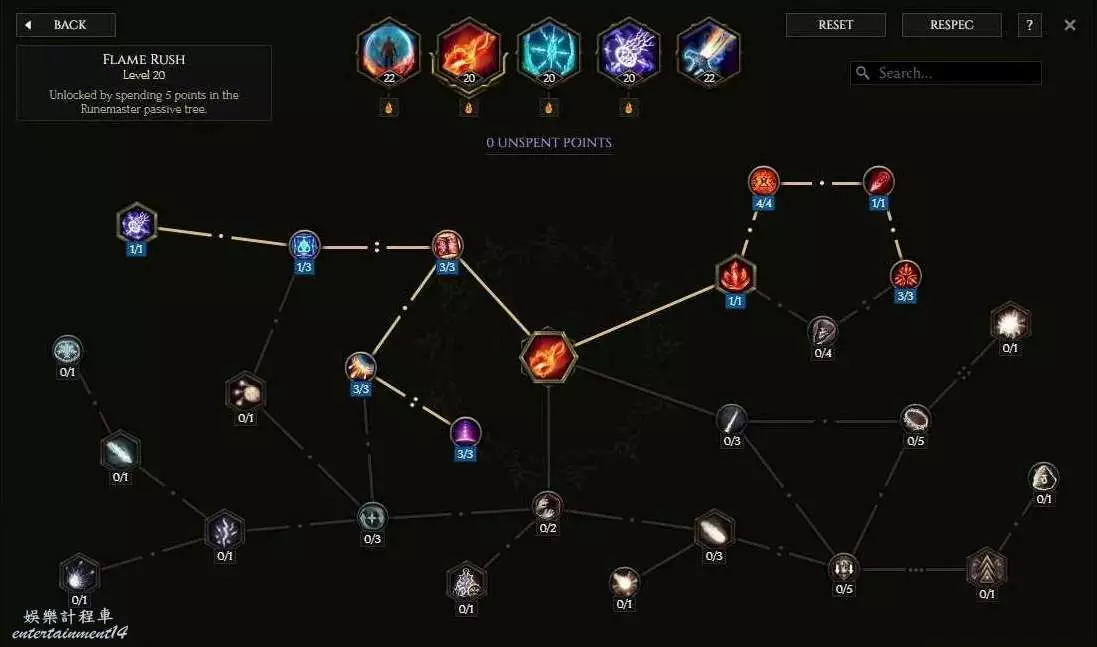 核心節點為增加250%火焰傷害,反擊範圍可以提高反擊距離
