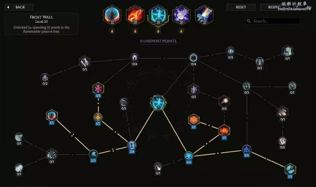 核心節點為持續時間內平移冰霜之牆[只要剩餘持續時間不少與一半即可不召喚新牆平移到任意位置,還可享受多次通過效果,測試極限數為3],每秒增加統治銘文傷害[按通過時剩餘時間計算,可被平移觸發],通過冰霜之牆釋放火焰護盾節點[無CD限制]