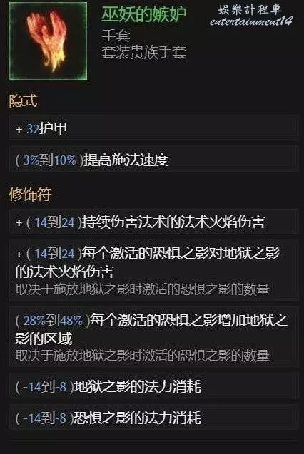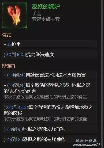 這也是為什麼要6骷髏上限,因為手套的效果是釋放地獄幽影的時候根據有多少個已經啟動的恐懼幽影獲得點傷,之後啟動的恐懼幽影不算,技能樹點滿恐懼幽影上限6個,剛好對應6個骷髏。進場先給6個骷髏掛滿恐懼幽影開打就完事了。