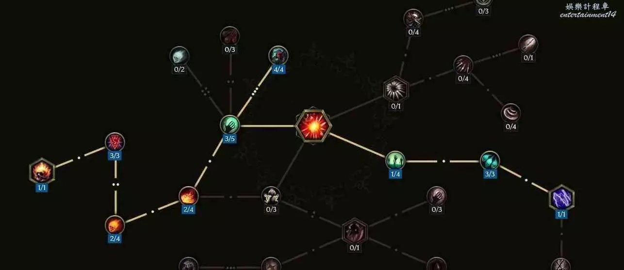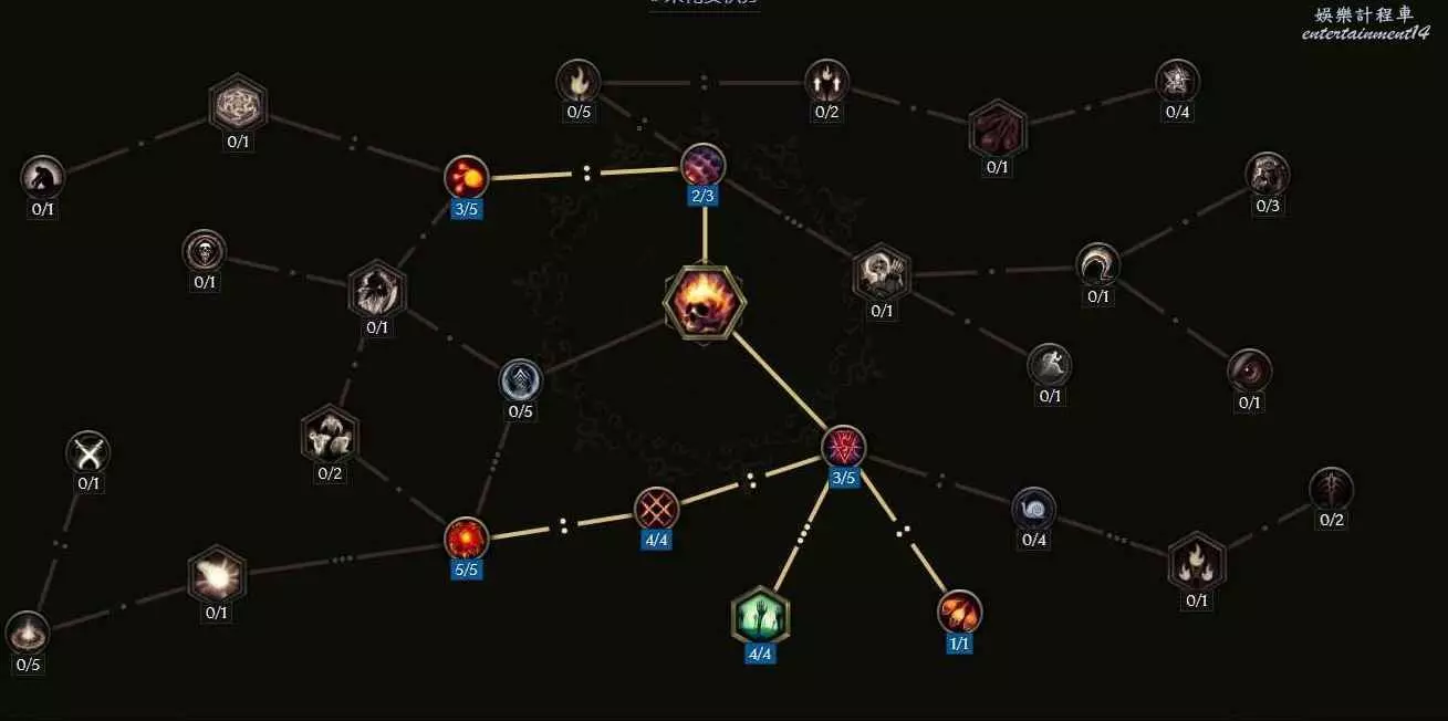 核心技能2:犧牲,最左邊的節點就是高傷害的來源,無限疊加more增傷,所以點傷的多少只會影響每疊加一層提高的傷害,也就是疊加的速度。