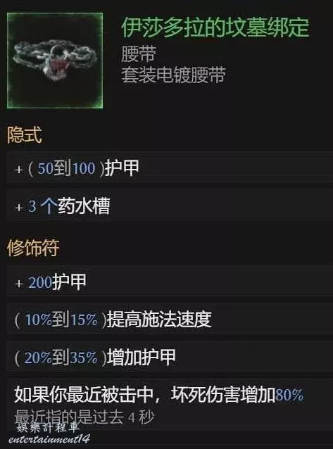 腰帶:沒有這個就要加護甲加血的就行,但是這個真的很香,死靈很缺護甲,這個還能加施法速度。