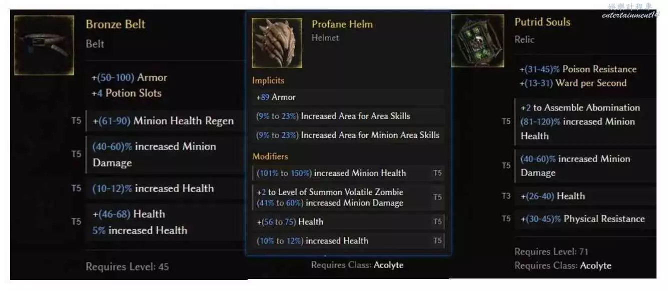 頭盔要召喚物技能範圍/CDR基底的,詞綴本體血量和召喚物血量,最後再來個僵屍等級,目的是為了僵屍等級後附帶的召喚物傷害,如果是護盾流,僵屍等級換智力。