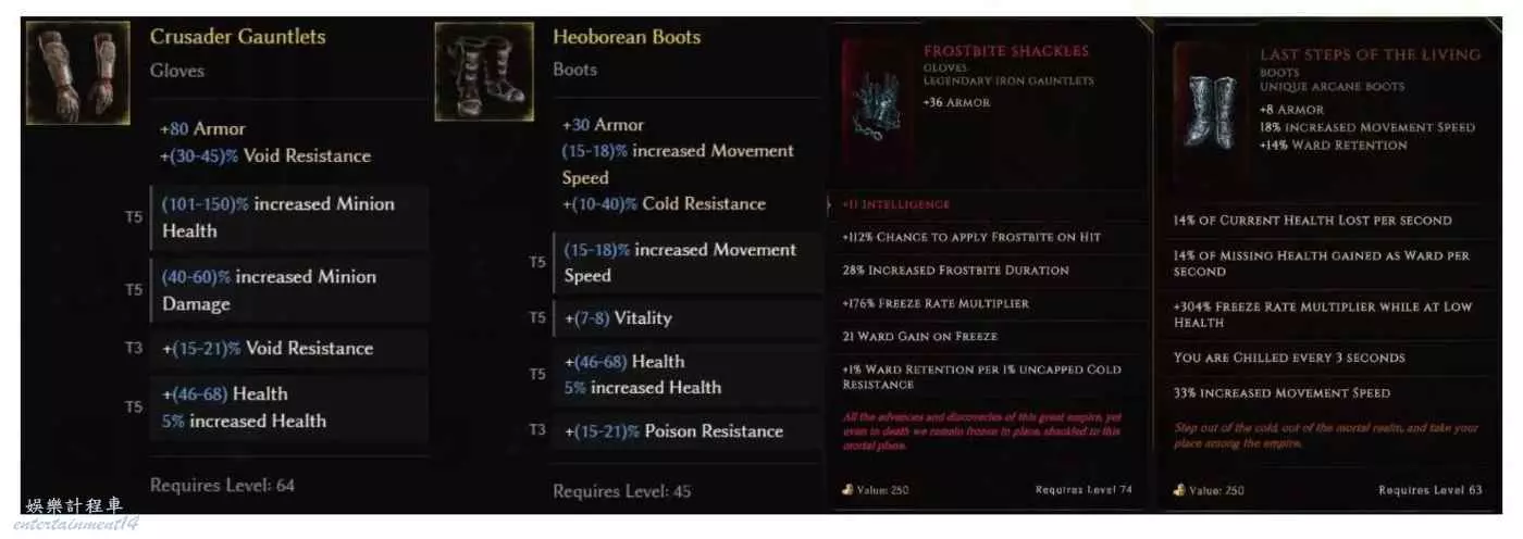 鞋子推薦冰抗基底,能白嫖一點是一點,詞綴移速血量和補抗,護盾流換暗金鞋子。