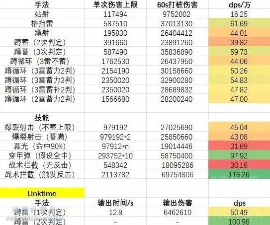 關於技能的dps,算上了技能前搖和後搖以及重新進入瞄準狀態的時間,盡可能接近實際情況。