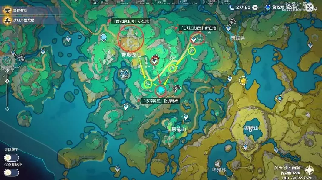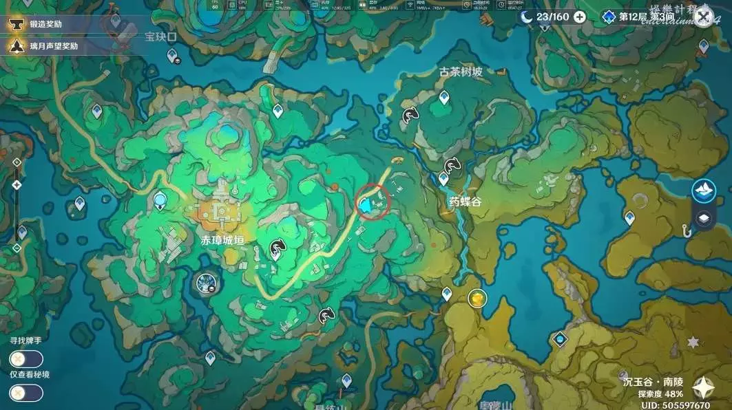 我們傳送到「赤璋城垣」正東方的錨點,來到下圖位置(「赤璋輿圖」大概意示圖)