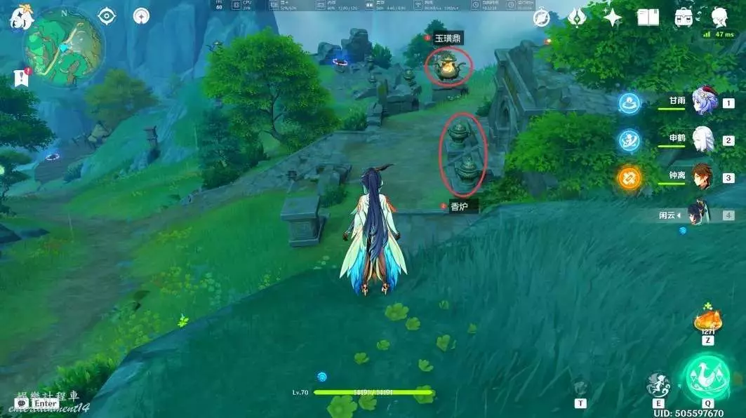 來到下圖位置後,我們先與之前的「玉璜鼎」共鳴,點燃中間的兩個香爐