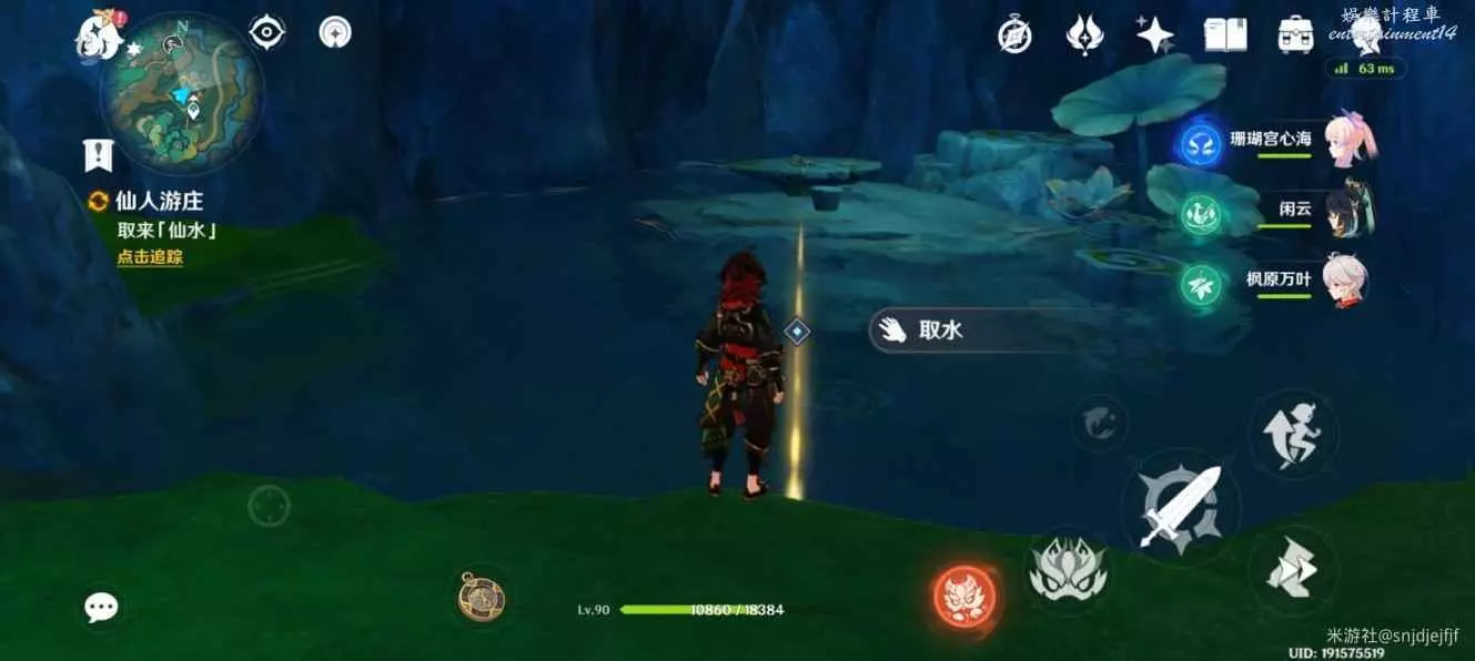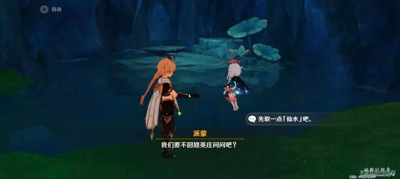 與其對話得知小女孩叫香莙,爺爺是莊裡的采藥人,采到了株仙草需要懸練山的仙水澆灌,進山尋找仙水三天未歸,接取任務幫助香莙尋找爺爺
