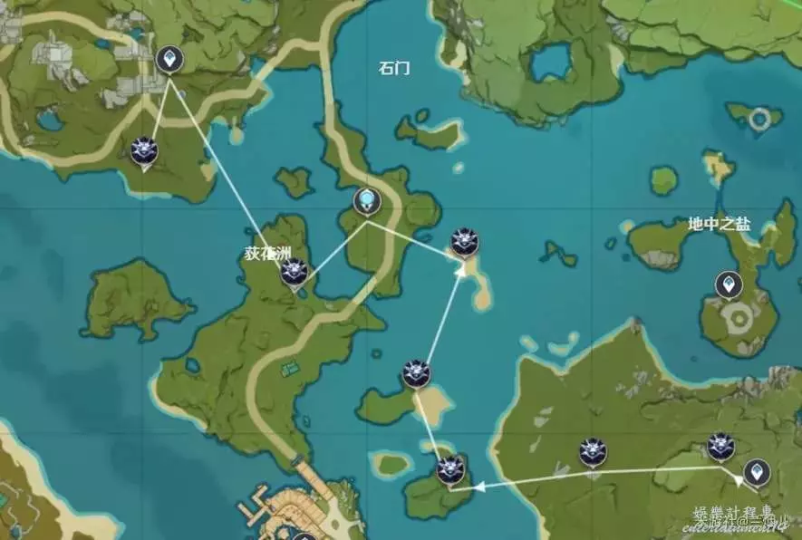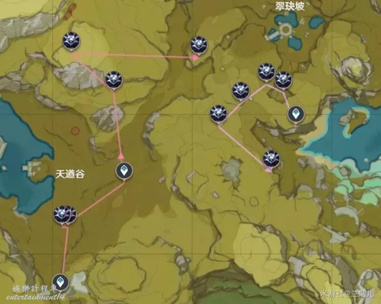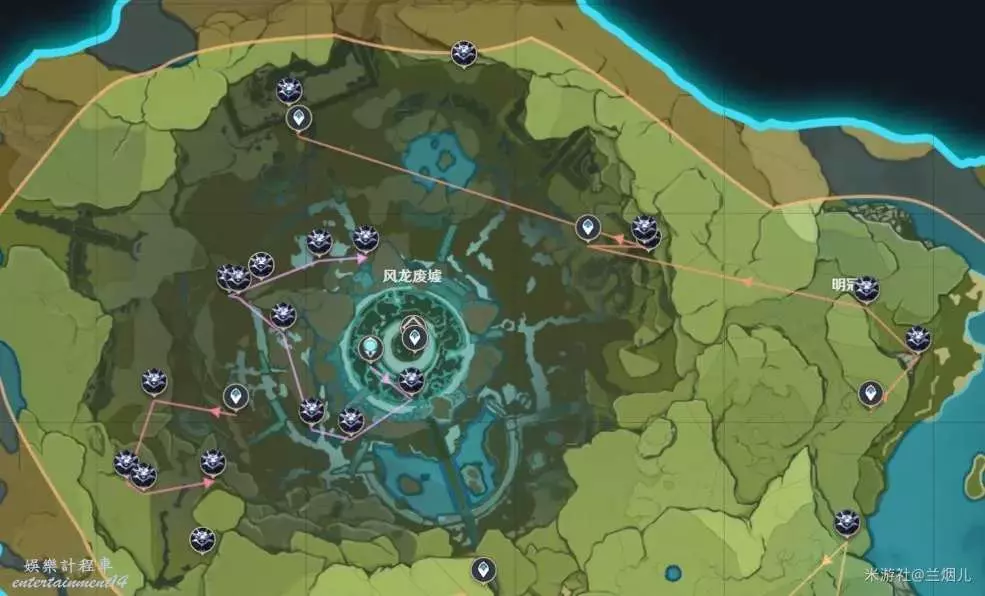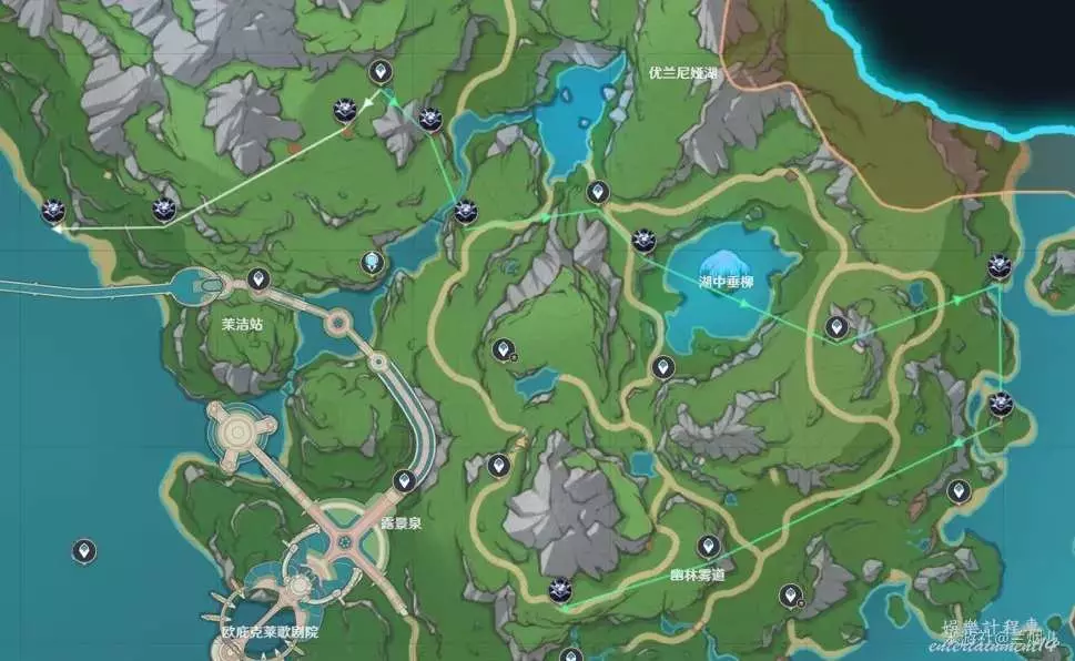丘丘薩滿目前廣泛分佈在提瓦特區域,其中優秀點位元有風龍廢墟、鶴觀和淵下宮,我的路線只是一部分,更多的僅供參考