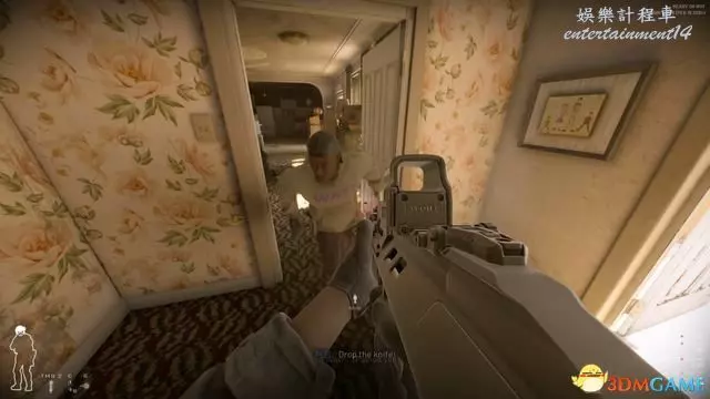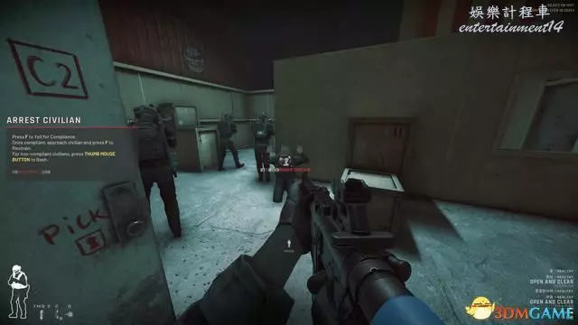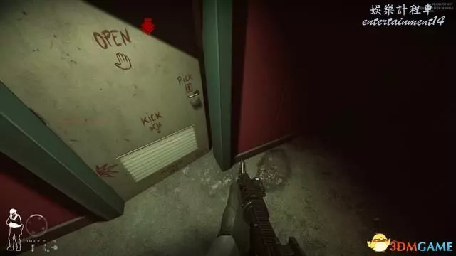 玩家自行踹門時會暴露在門後敵人的視野中,但NPC踹門則可以在一旁掩體後。