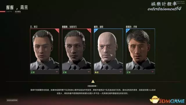 每次完成關卡(無論是否成功)都會結算一次隊員們的精神狀態,主要影響精神狀態的因素如下: