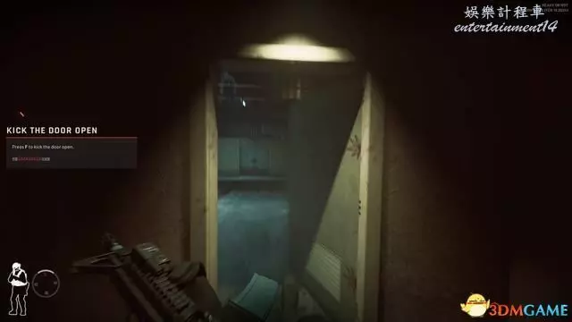 如下圖所示,通過上文③的形式將門推開小縫後,可以看到門後右下方是否有詭雷存在,確認無誤後也可以直接推門或踹門。