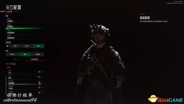 下圖為自訂介面,可對玩家的武器、攜帶裝備、防彈衣等進行一一調整。