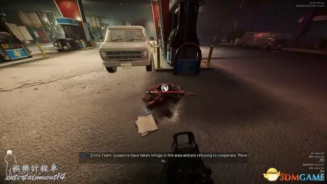 進入關卡,可以在加油站看到音像檔裡遭到射擊的流浪漢。