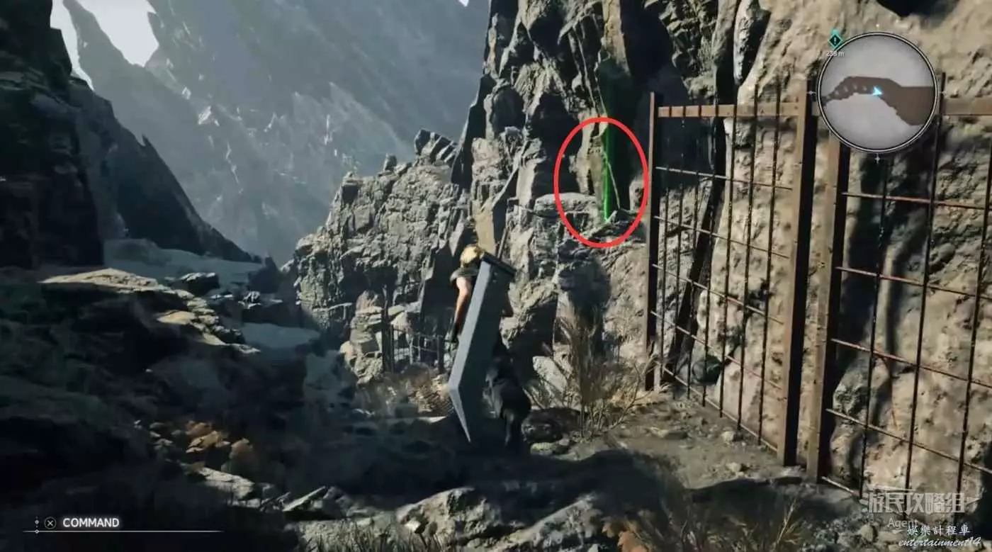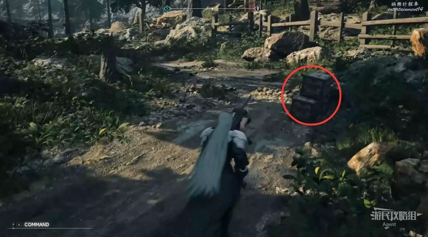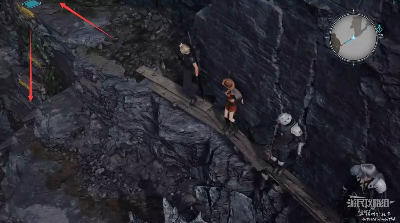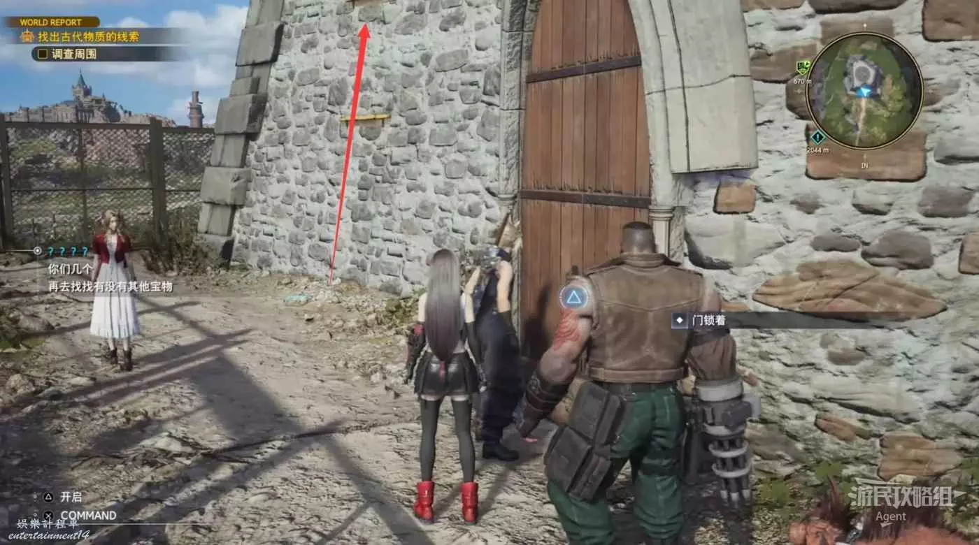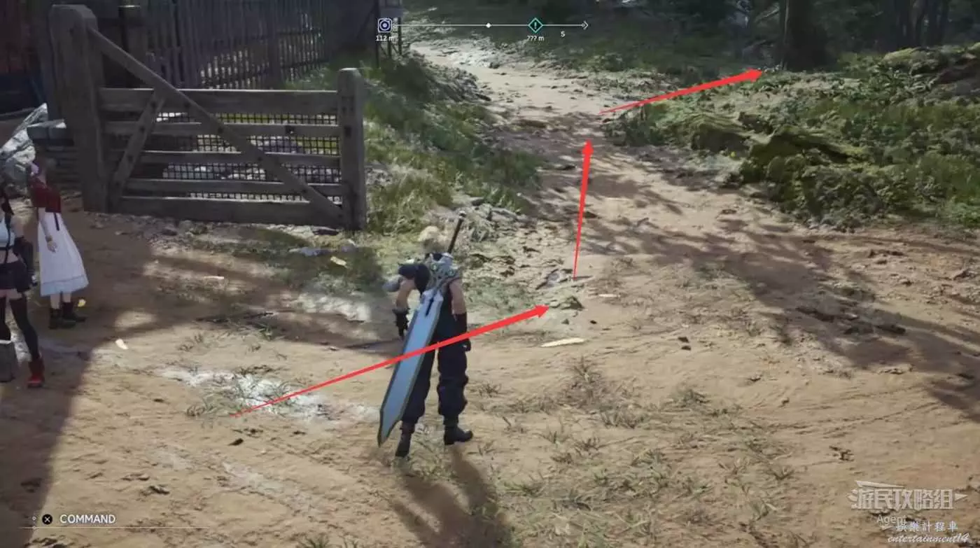 繞一圈過來發現側珠諾的南門也不讓進,不過這個召喚獸水晶其實在地下,按下圖箭頭方向繞道走即可找到。