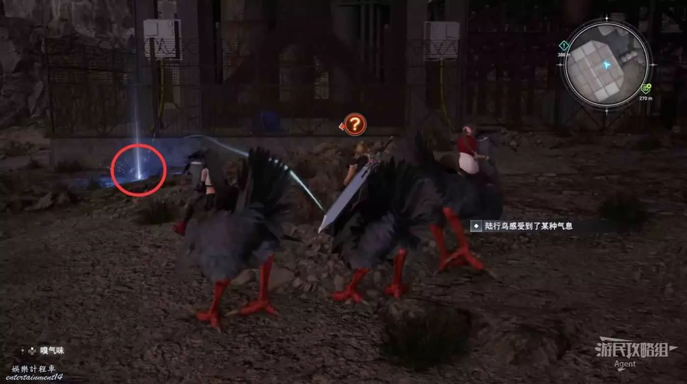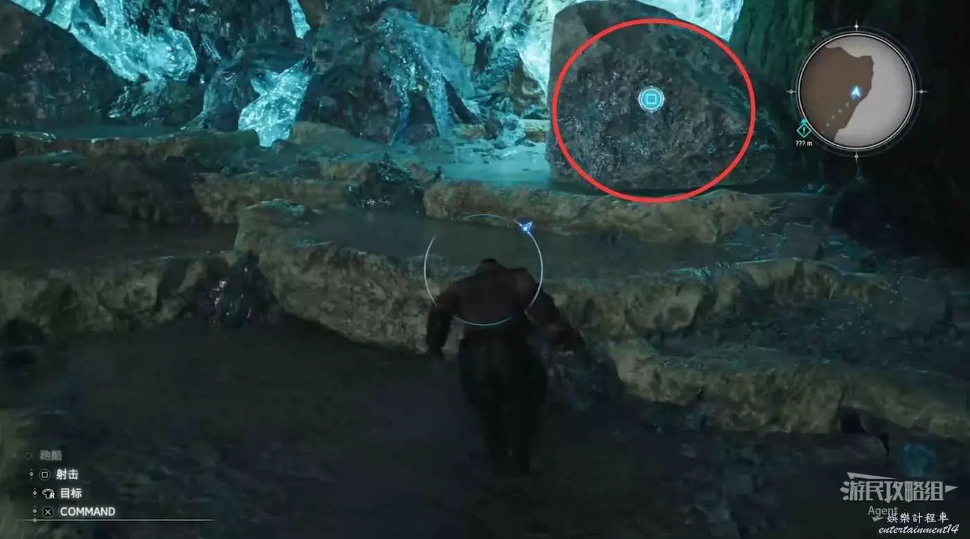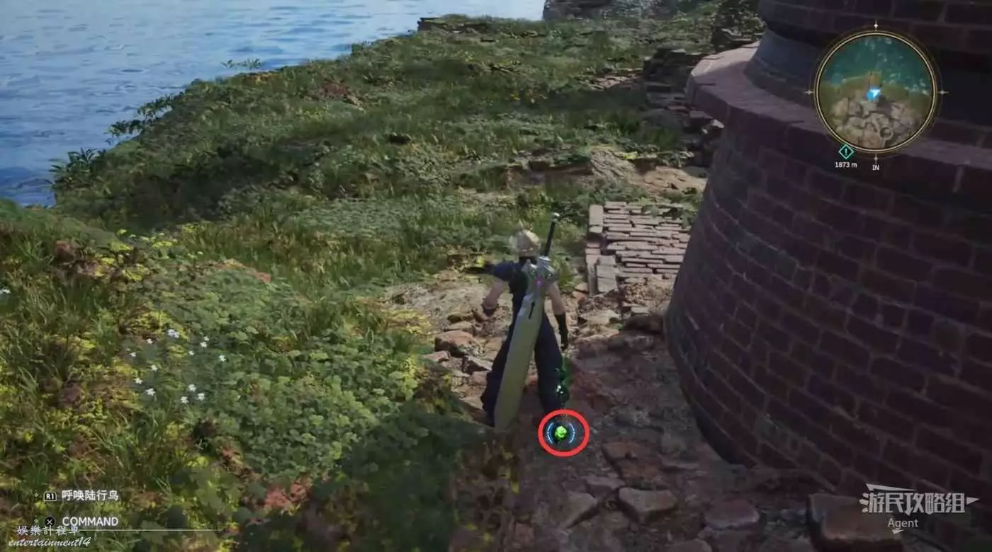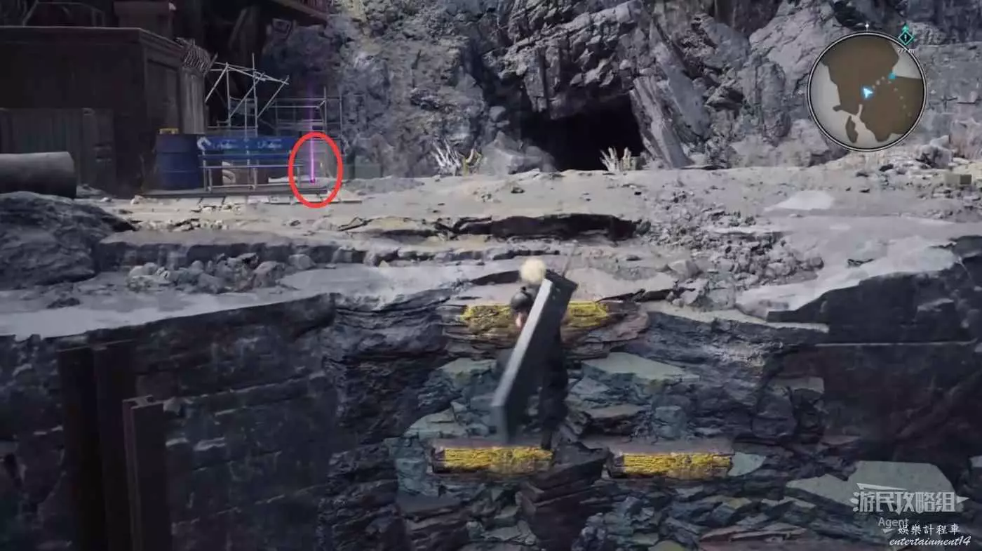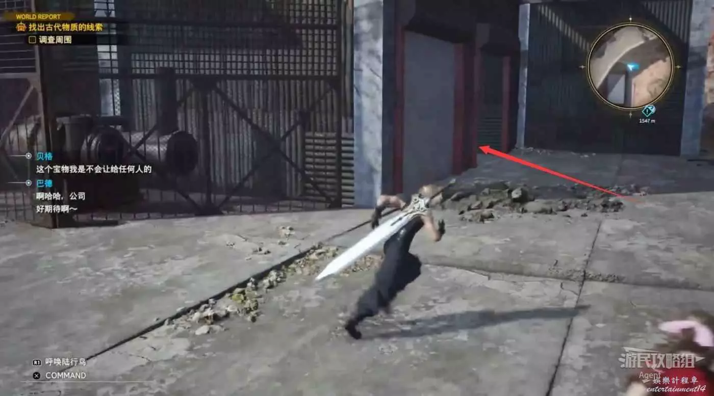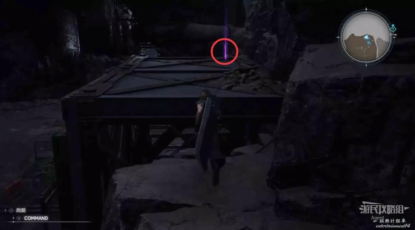 繞一圈過來發現側珠諾的南門也不讓進,不過這個召喚獸水晶其實在地下,按下圖箭頭方向繞道走即可找到。