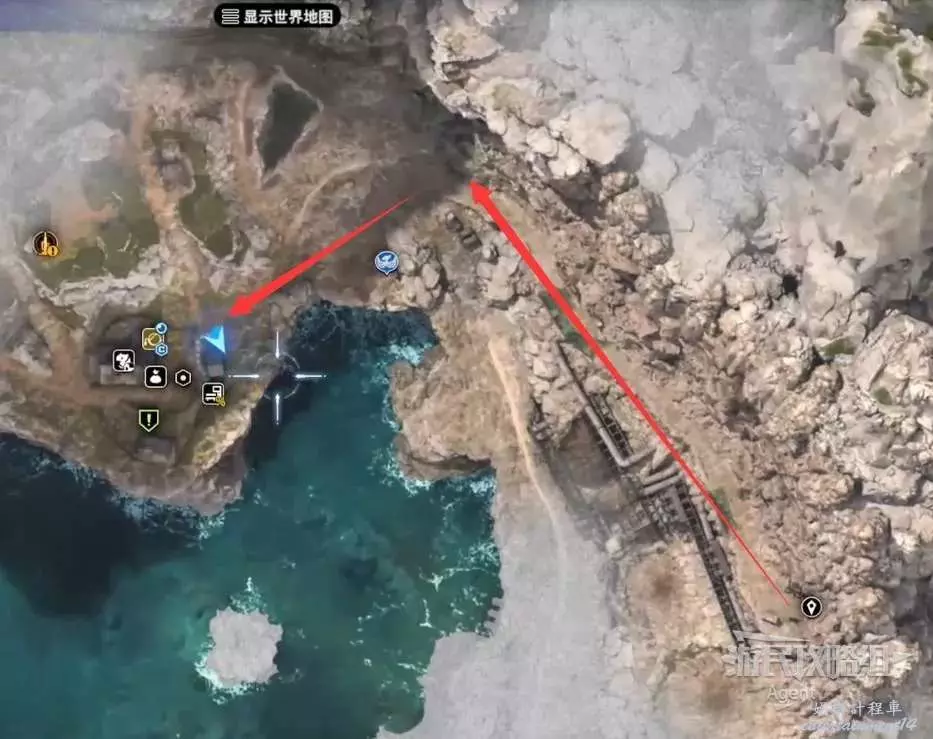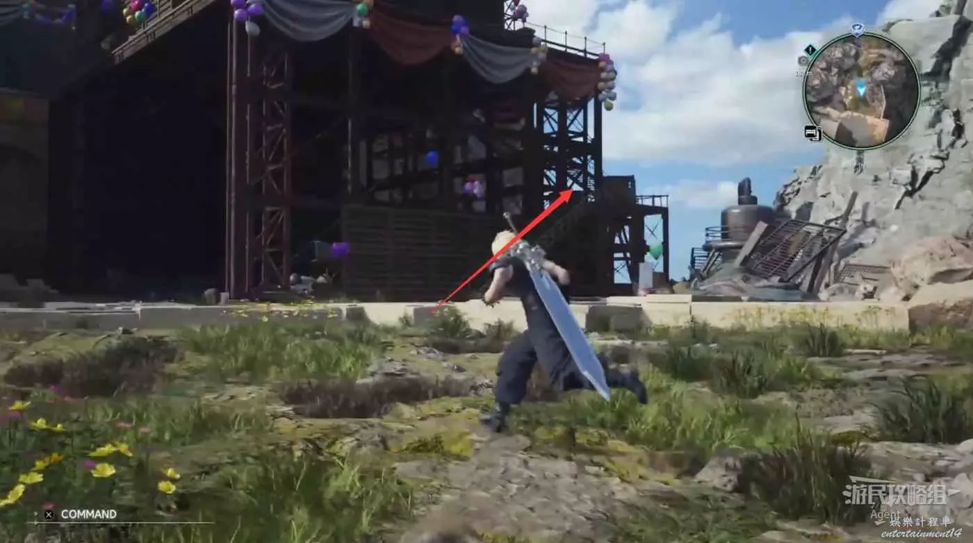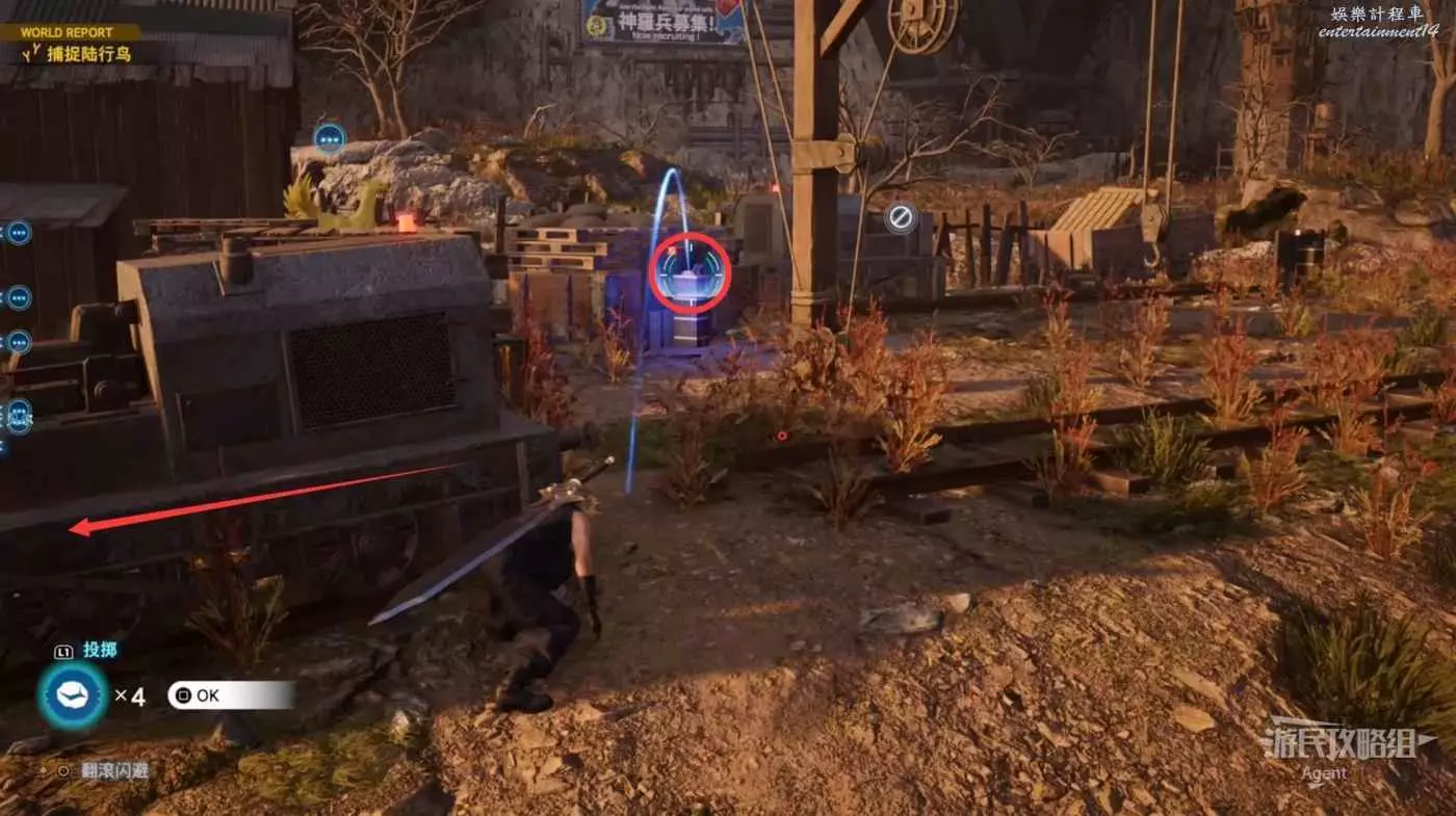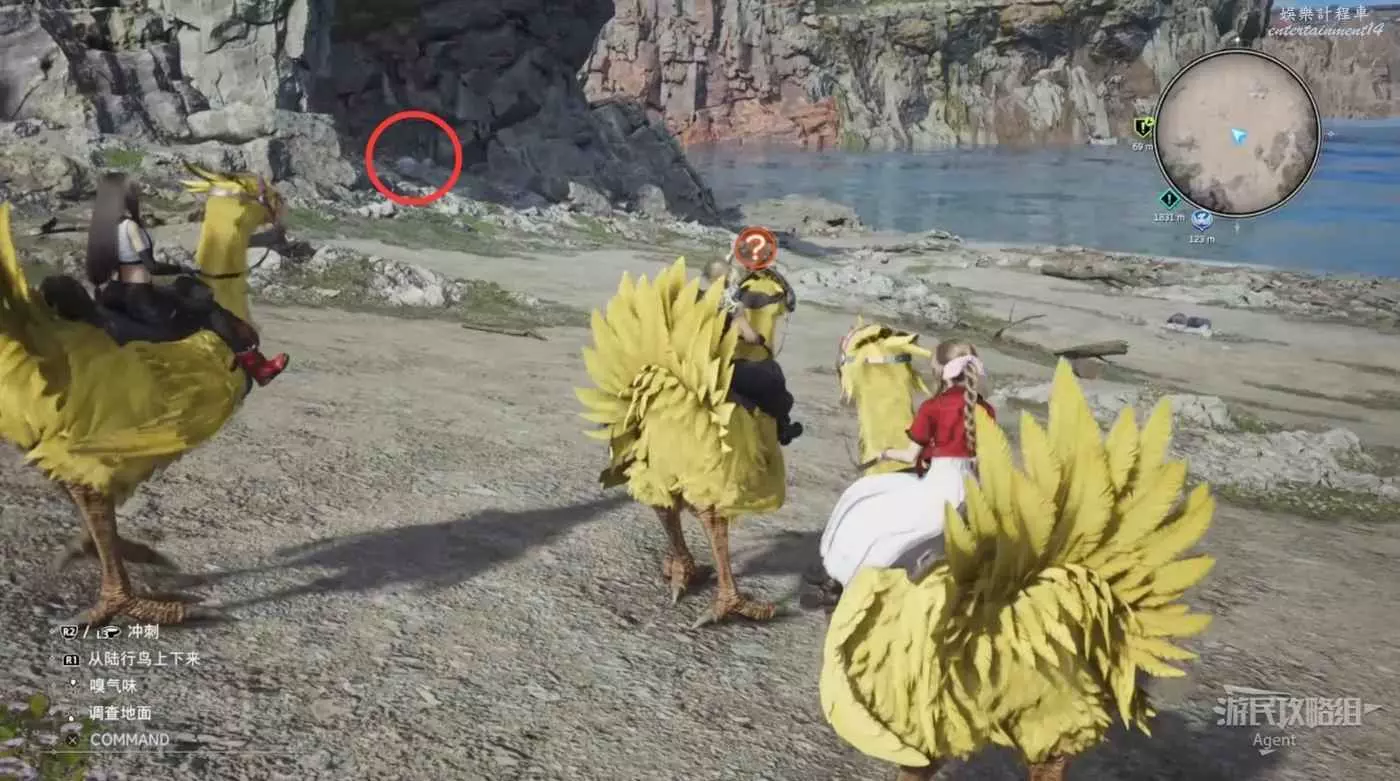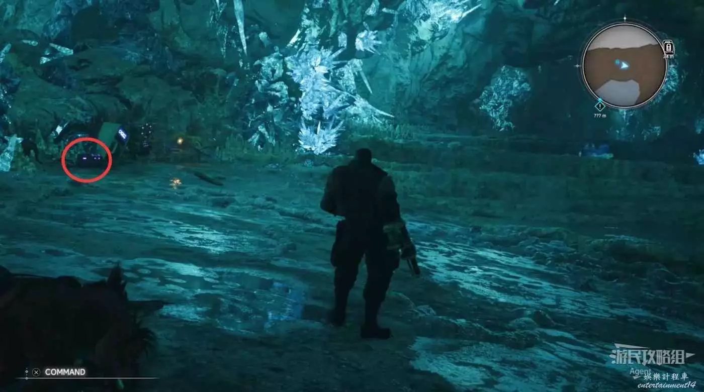 繞一圈過來發現側珠諾的南門也不讓進,不過這個召喚獸水晶其實在地下,按下圖箭頭方向繞道走即可找到。