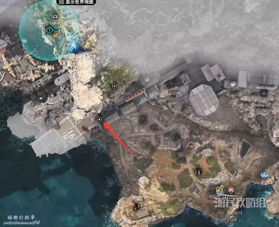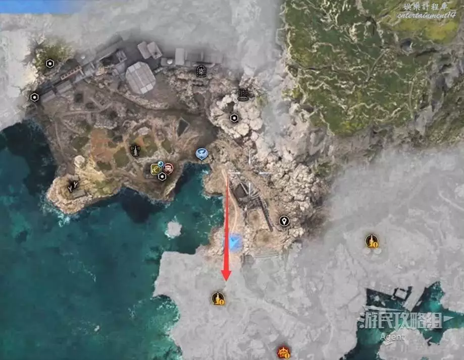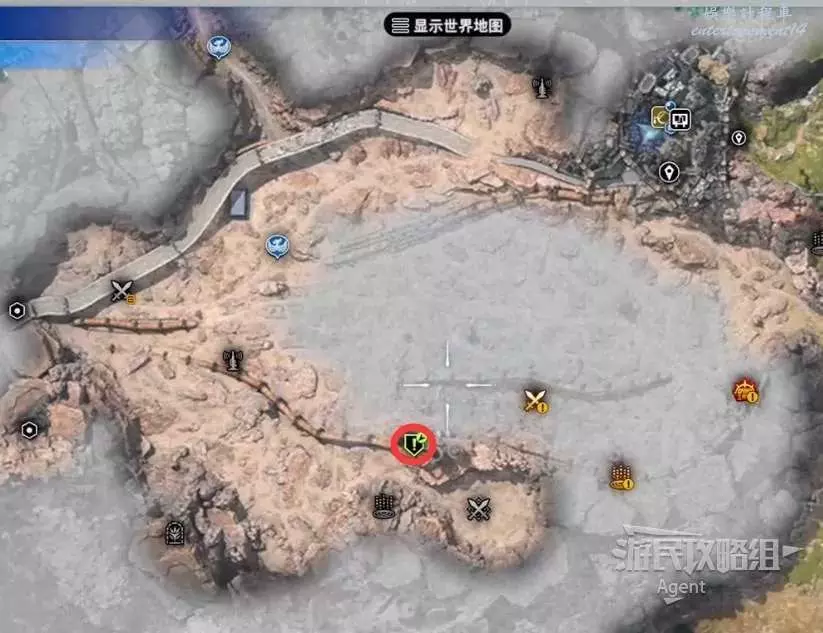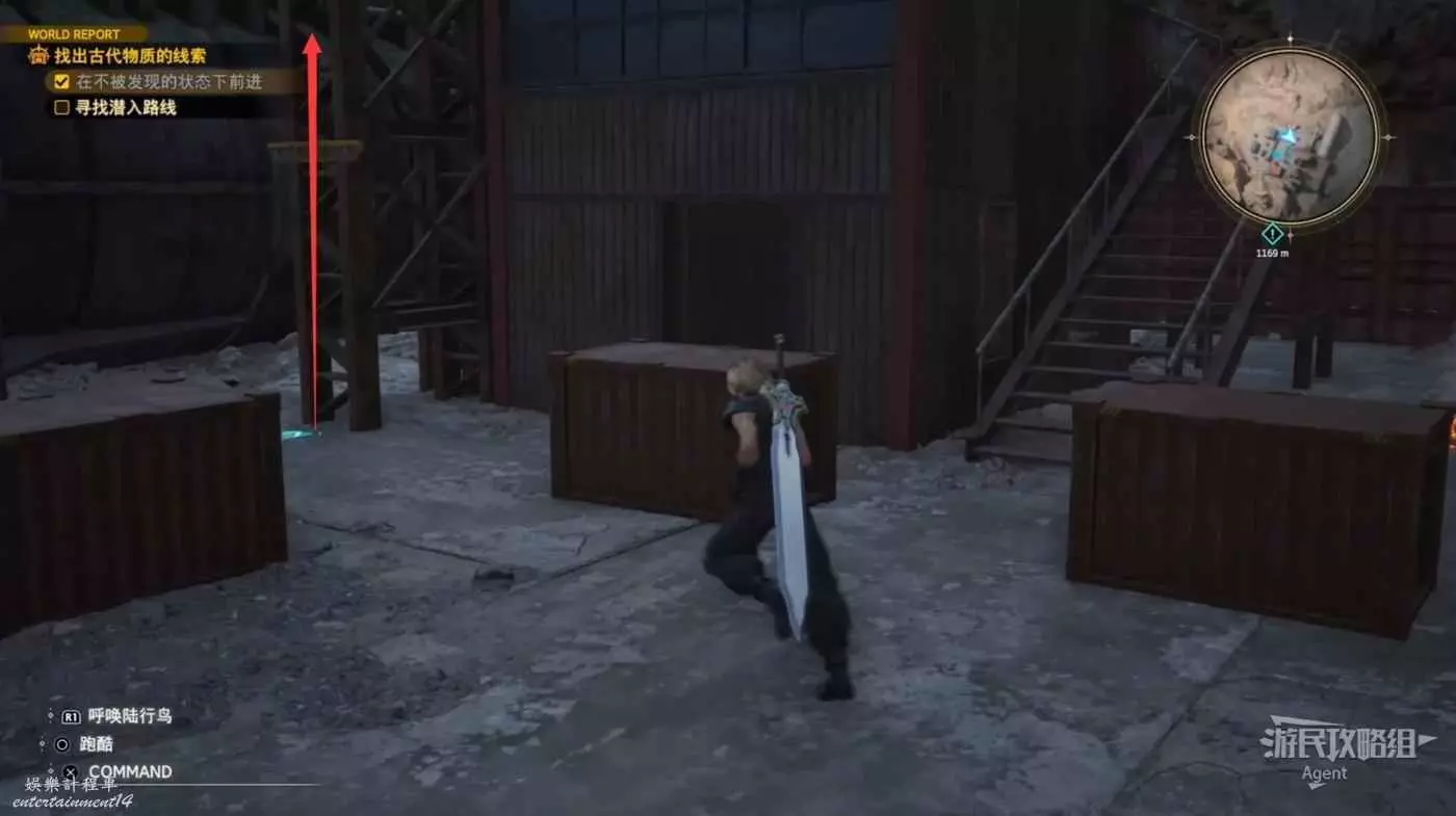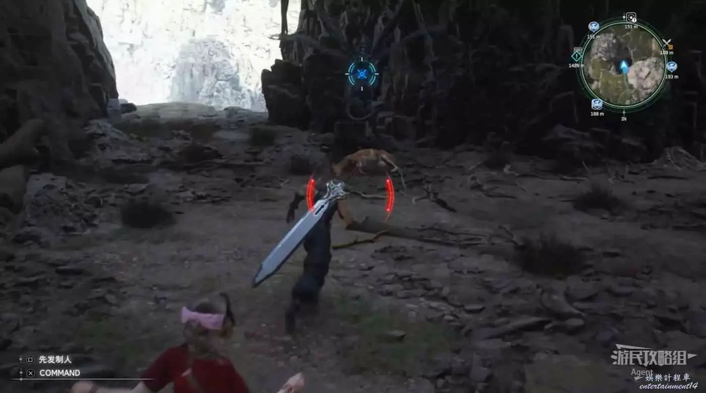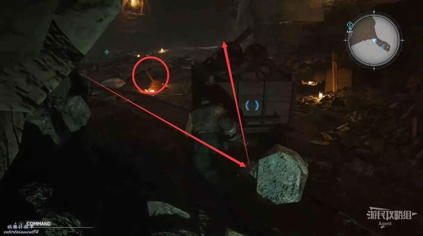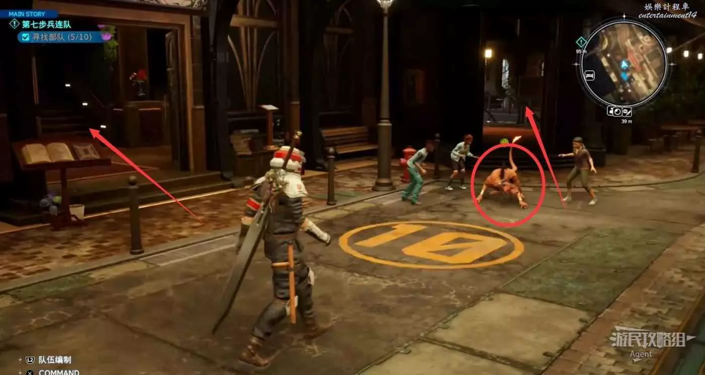 繞一圈過來發現側珠諾的南門也不讓進,不過這個召喚獸水晶其實在地下,按下圖箭頭方向繞道走即可找到。