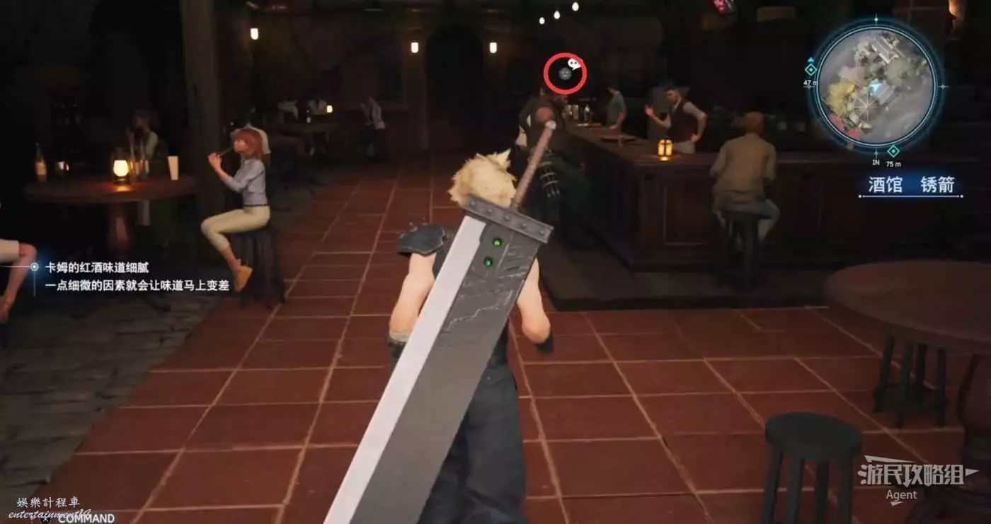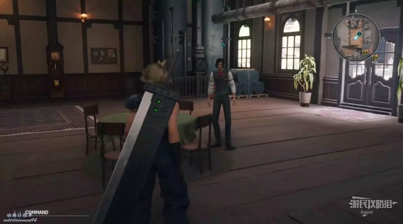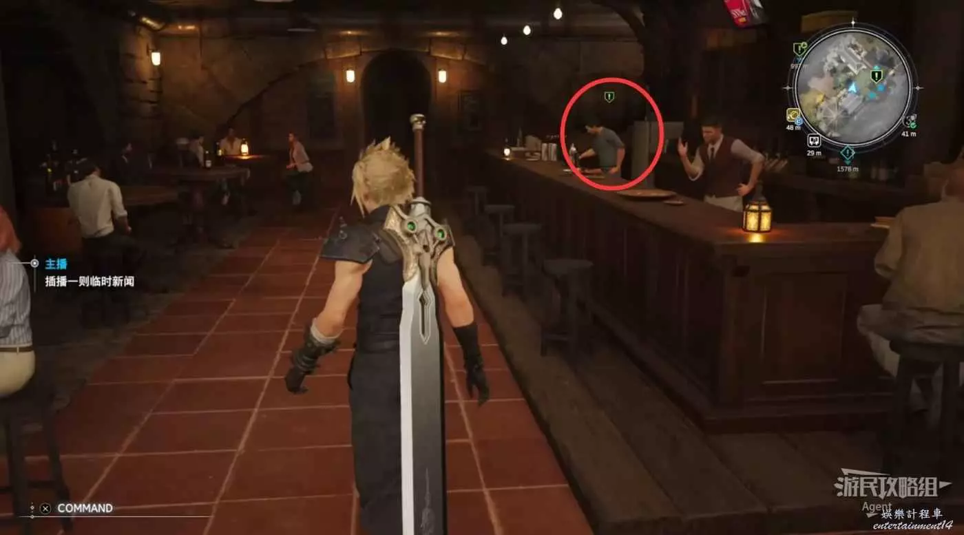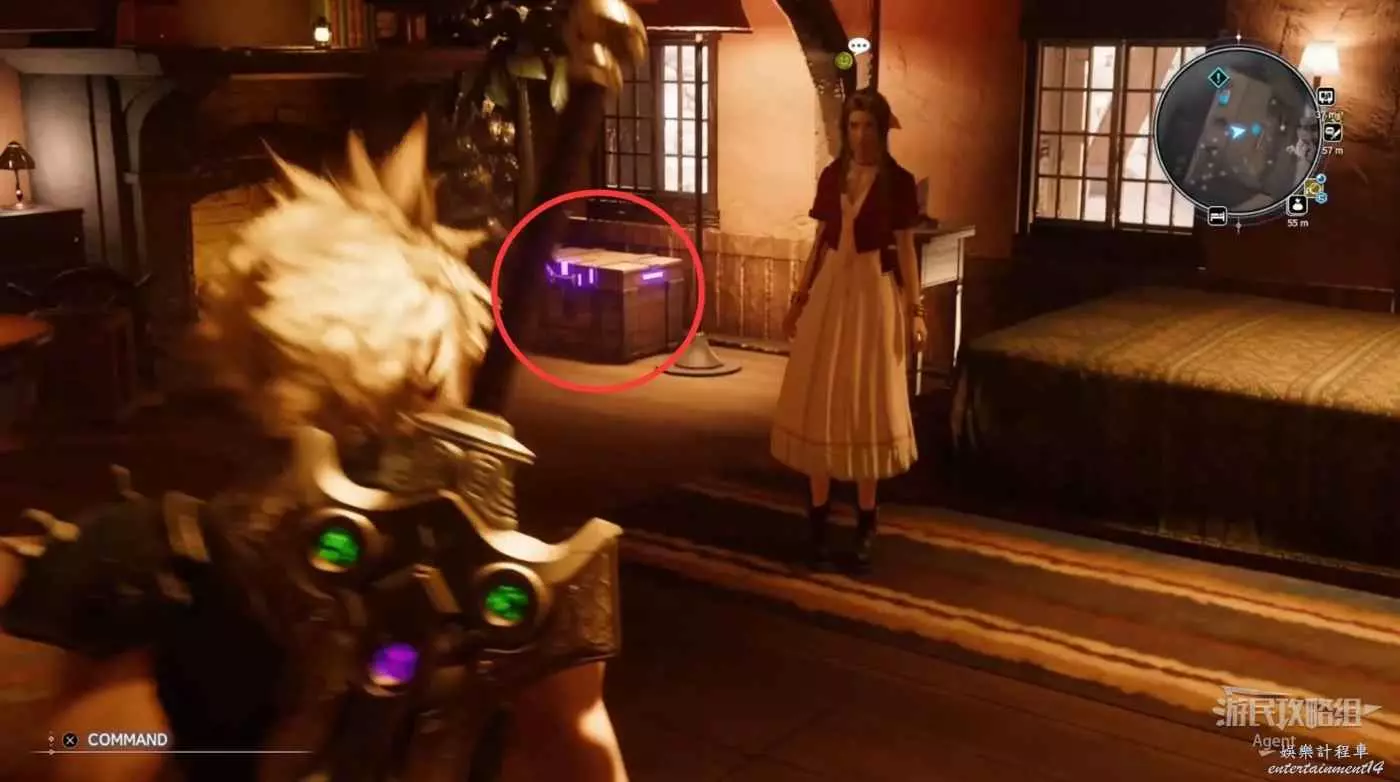 下圖箭頭方向是酒吧,酒吧裡見到巴雷特。酒吧樓上的倉庫裡有寶箱,還可以通往上層。