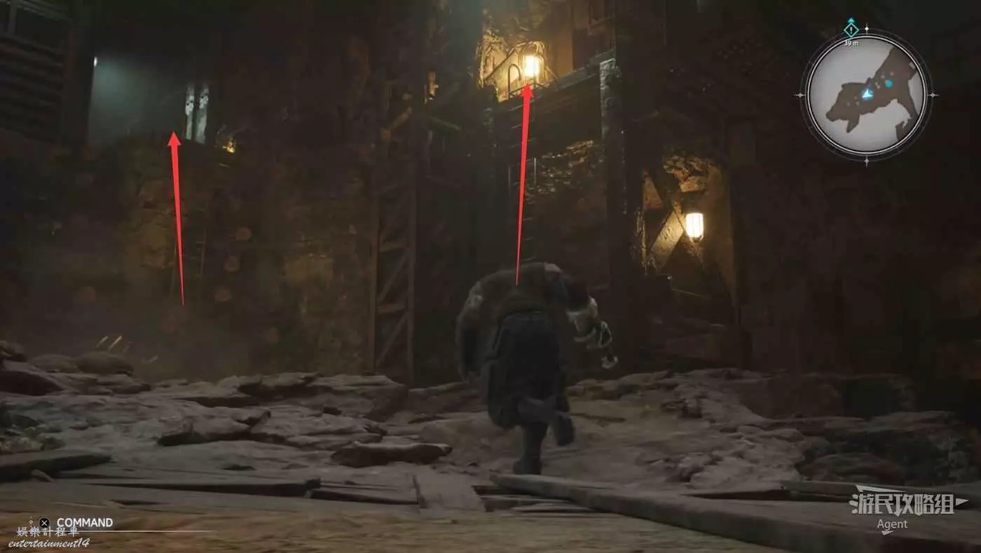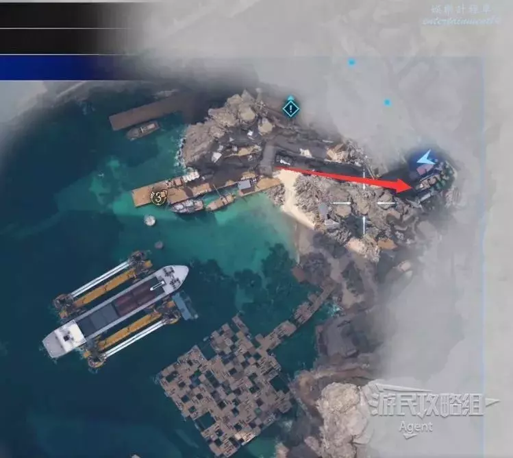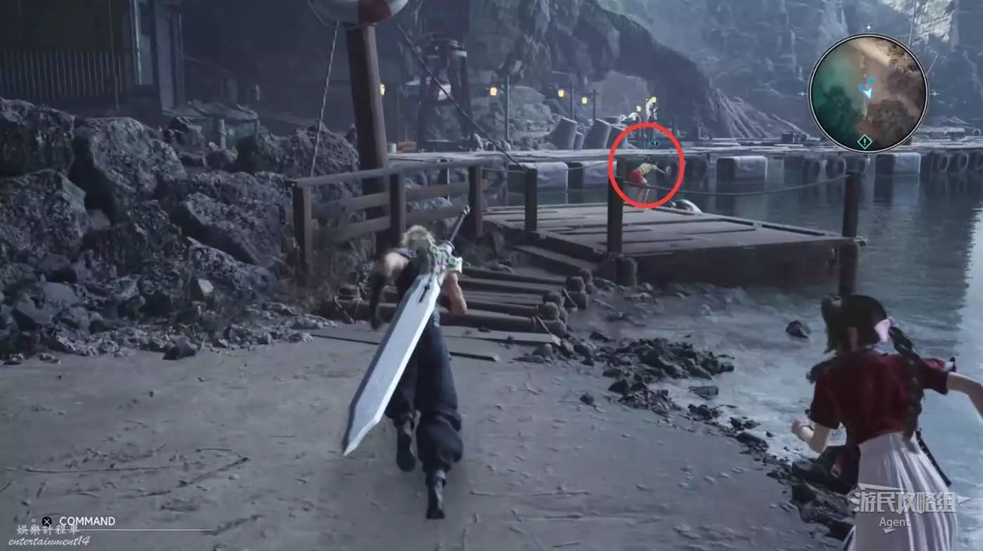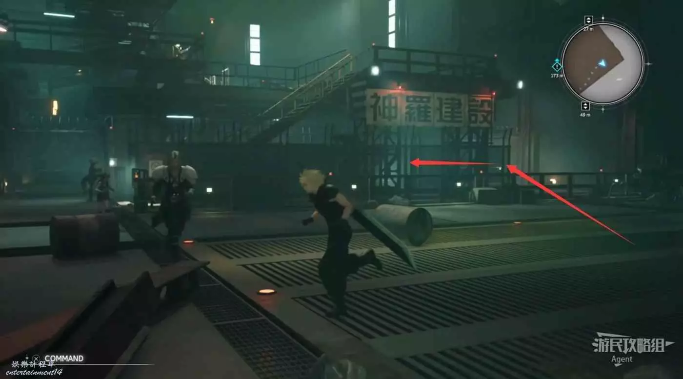 下圖箭頭方向是酒吧,酒吧裡見到巴雷特。酒吧樓上的倉庫裡有寶箱,還可以通往上層。