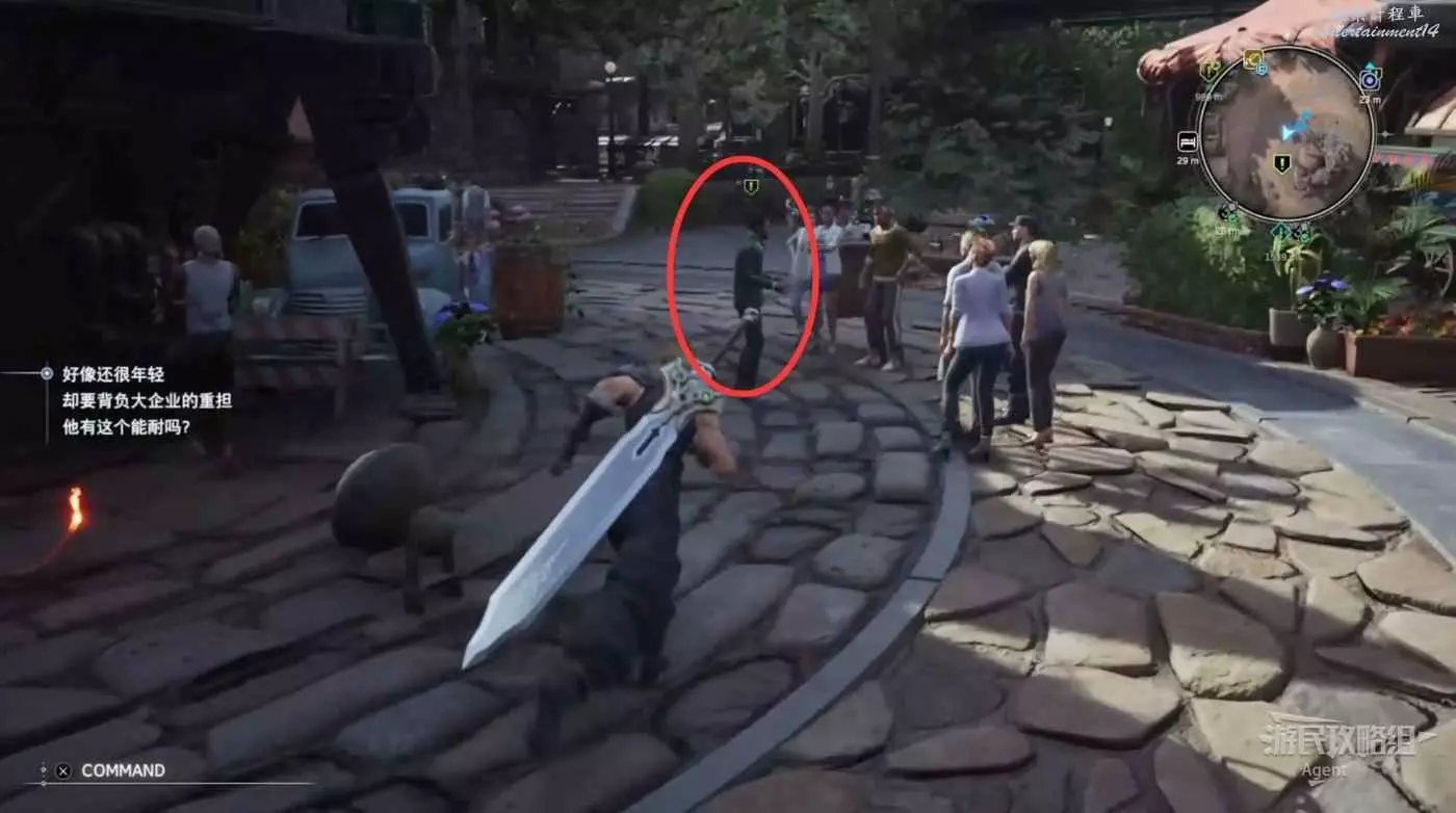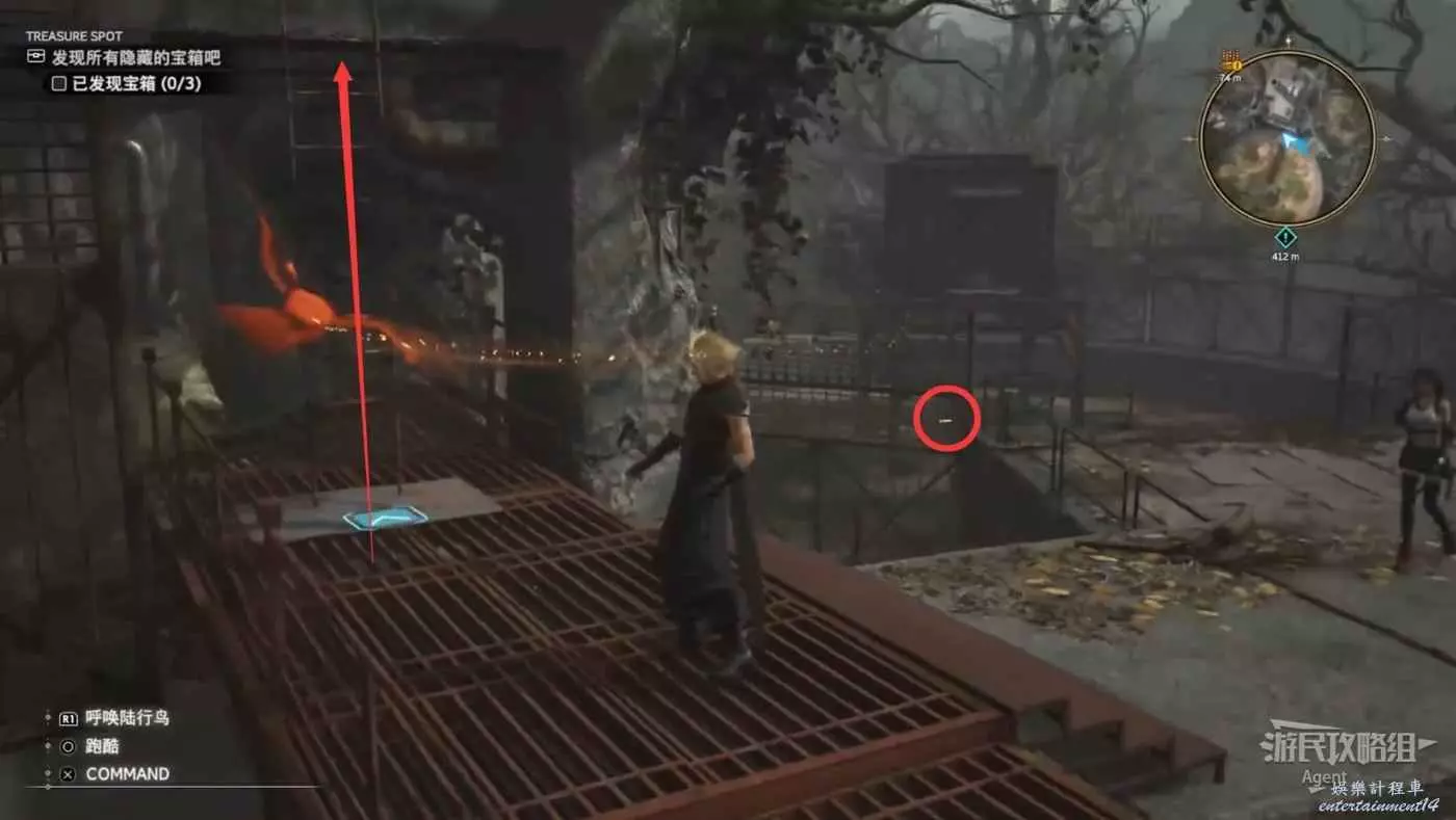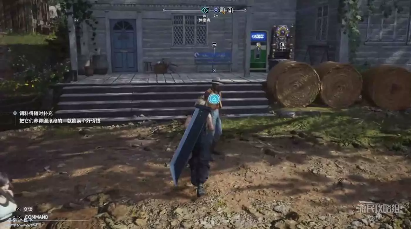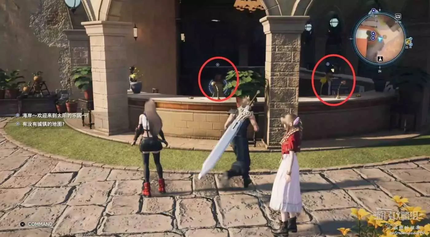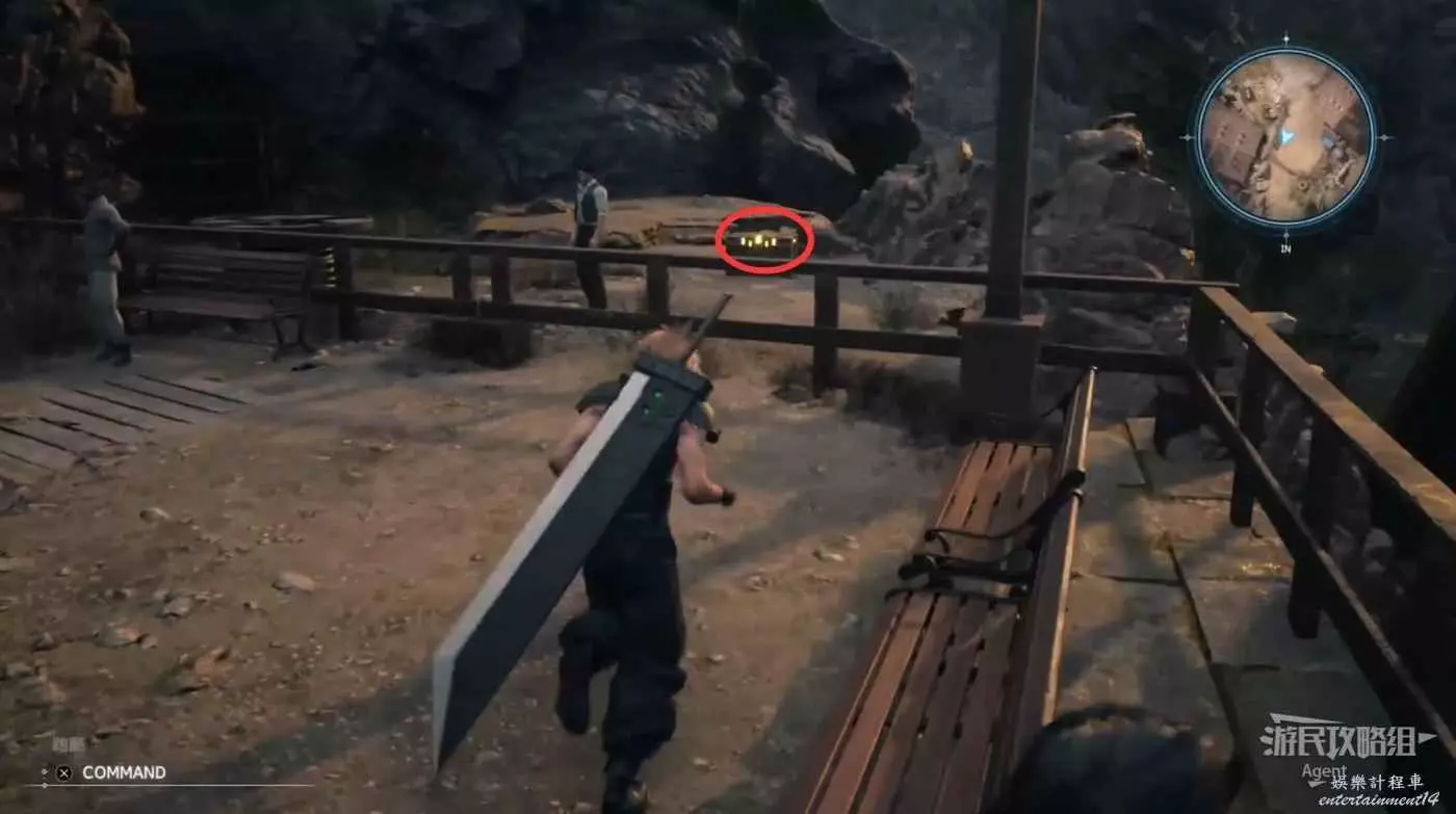 先逛逛村子搜刮寶箱。注意克勞德可以翻越很多地形,比如村子南邊這個寶箱可以翻越欄杆過去拿(欄杆旁有個人在來回翻越,其實就是提示給你看的)。