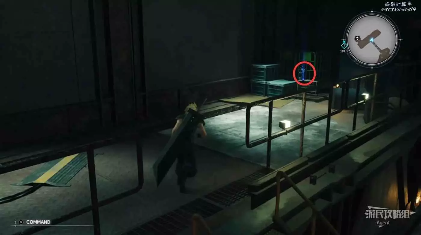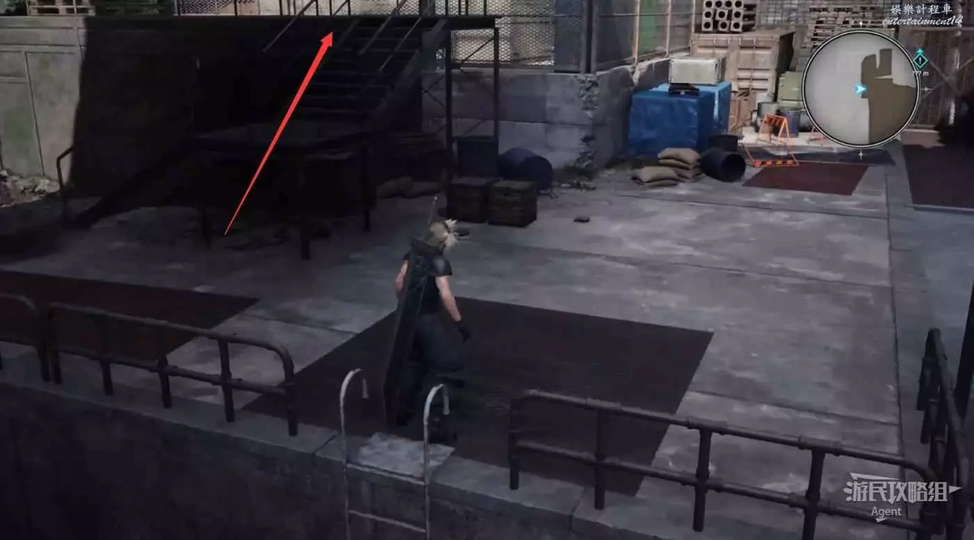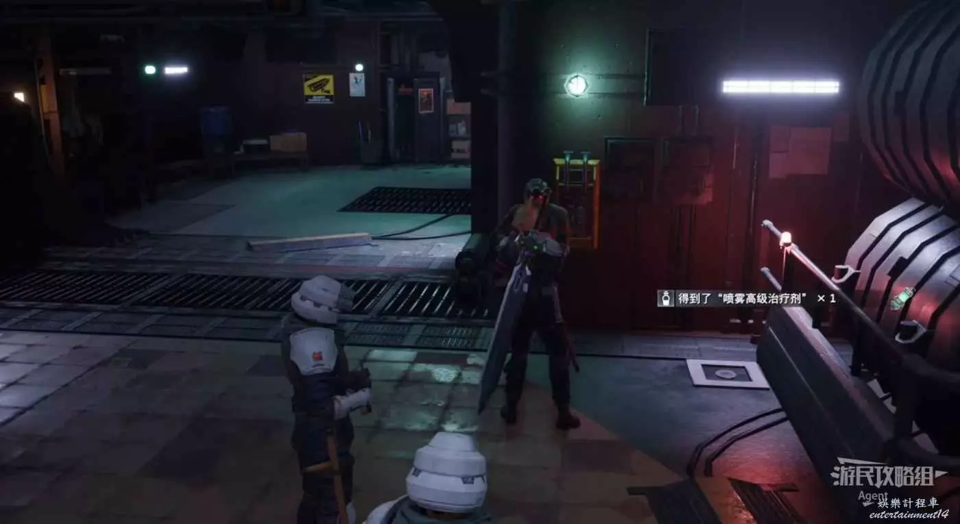 劇情後薩菲羅斯入隊,順著黃色油漆爬上來拿到魔晶石“提升HP”。旁邊的長椅是休息點,坐上去休息可以完全恢復。