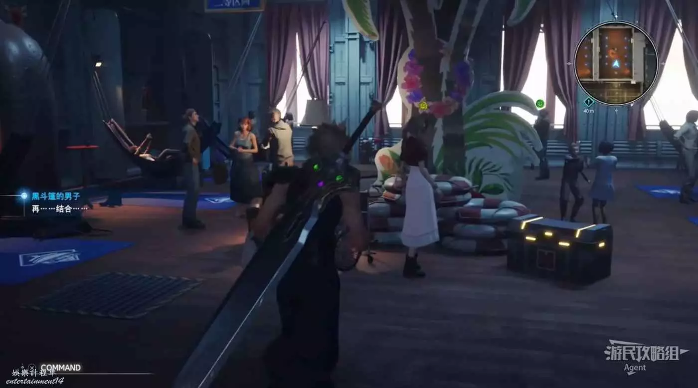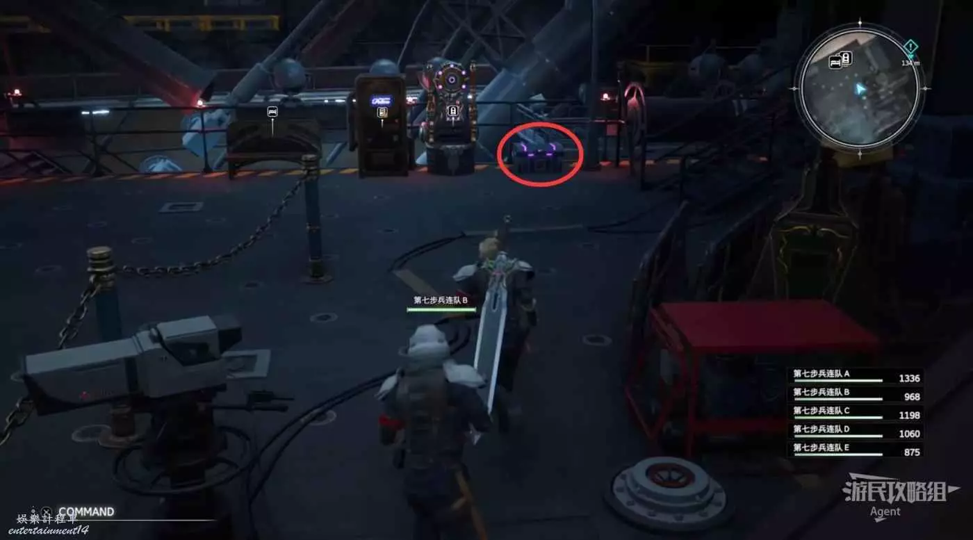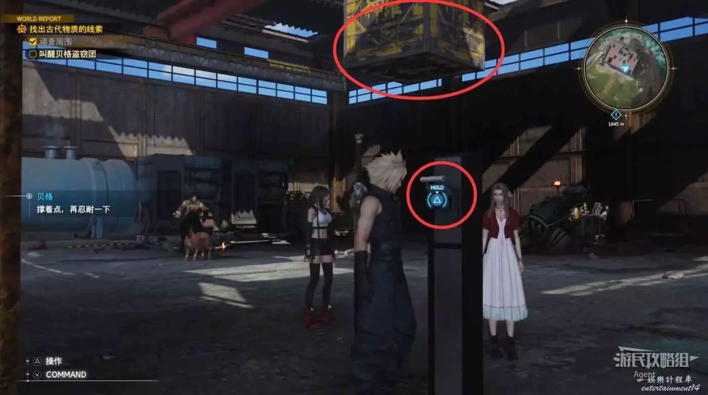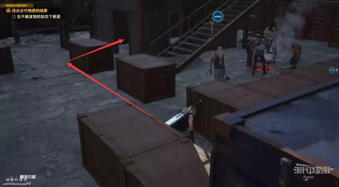 劇情後薩菲羅斯入隊,順著黃色油漆爬上來拿到魔晶石“提升HP”。旁邊的長椅是休息點,坐上去休息可以完全恢復。