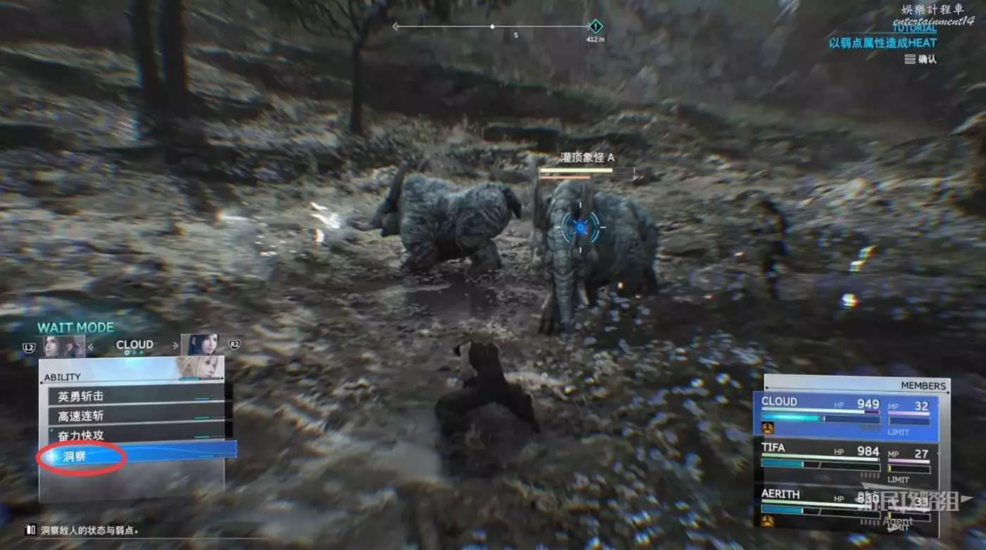 戰鬥時使用“洞察”能力,可以查看敵人的弱點屬性,用相應屬性的能力或魔法攻擊,可使敵人的力竭量表進入HEAT狀態。HEAT狀態下的敵人會變得容易退縮,也很容易陷入力竭狀態。
